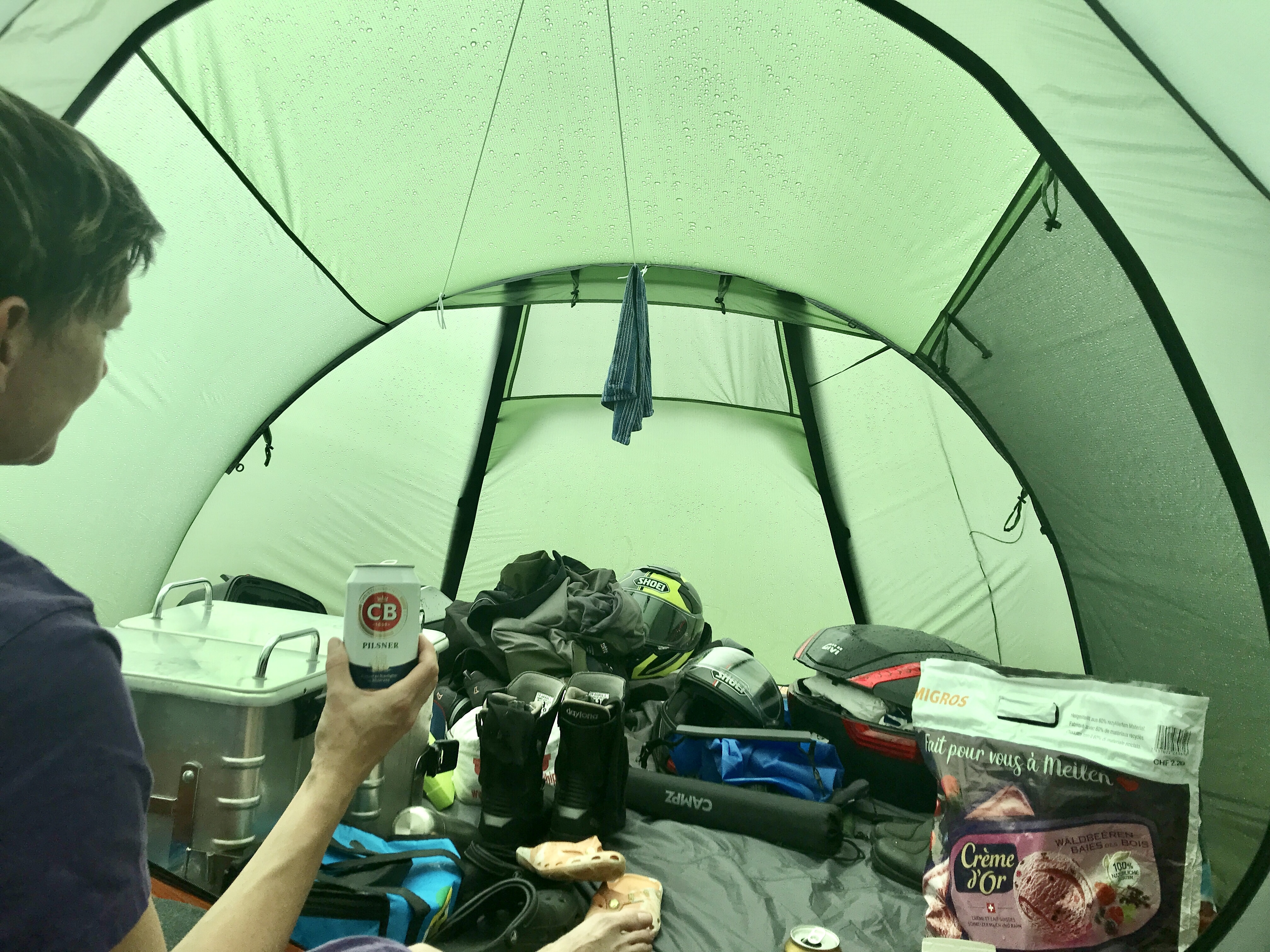 Heute offerierten uns unsere Campingnachbarn (zwei Töfffahrer aus Deutschland) einen Single Malt Whisky nach dem Essen in der modernen Campingküche.