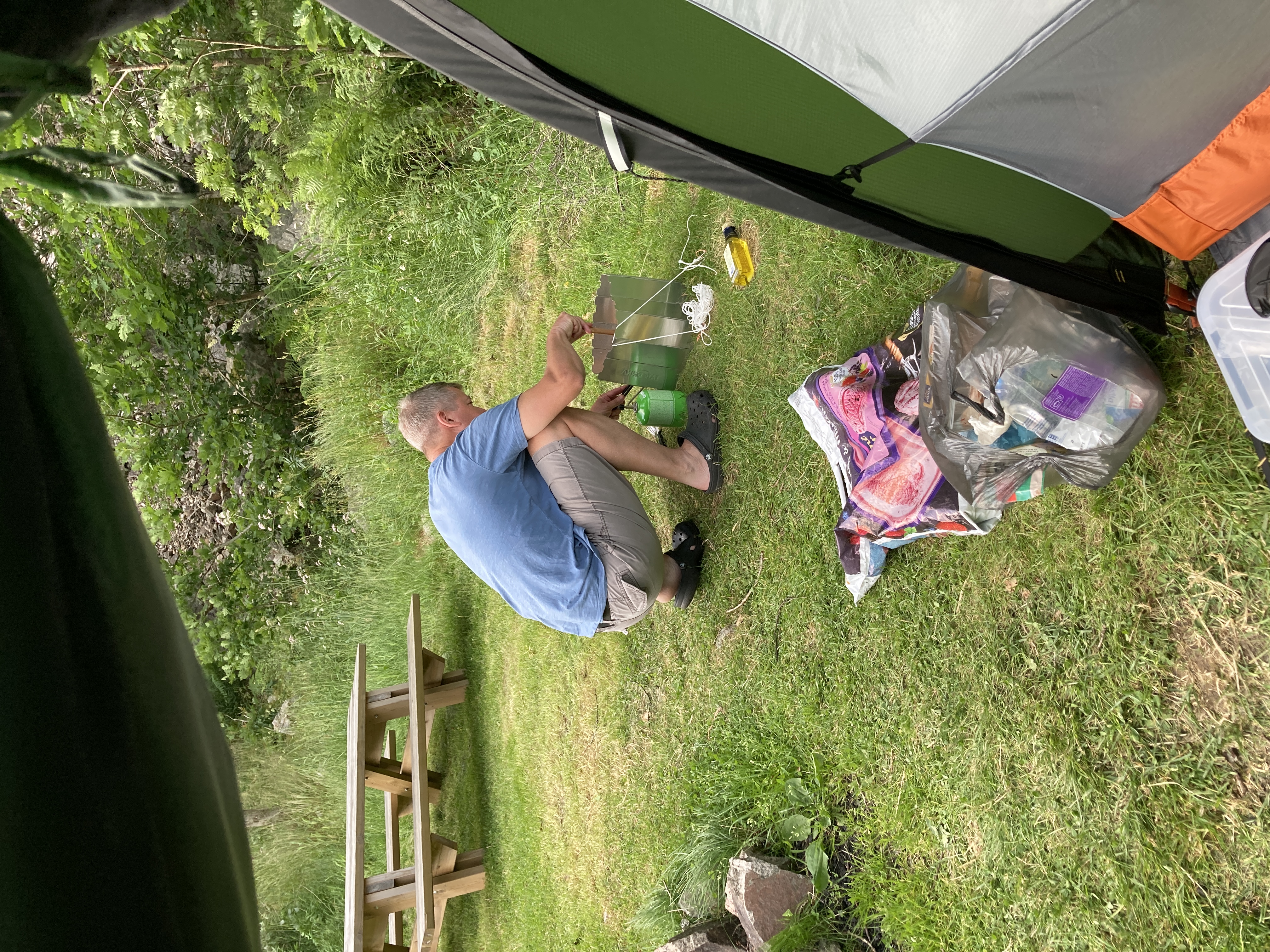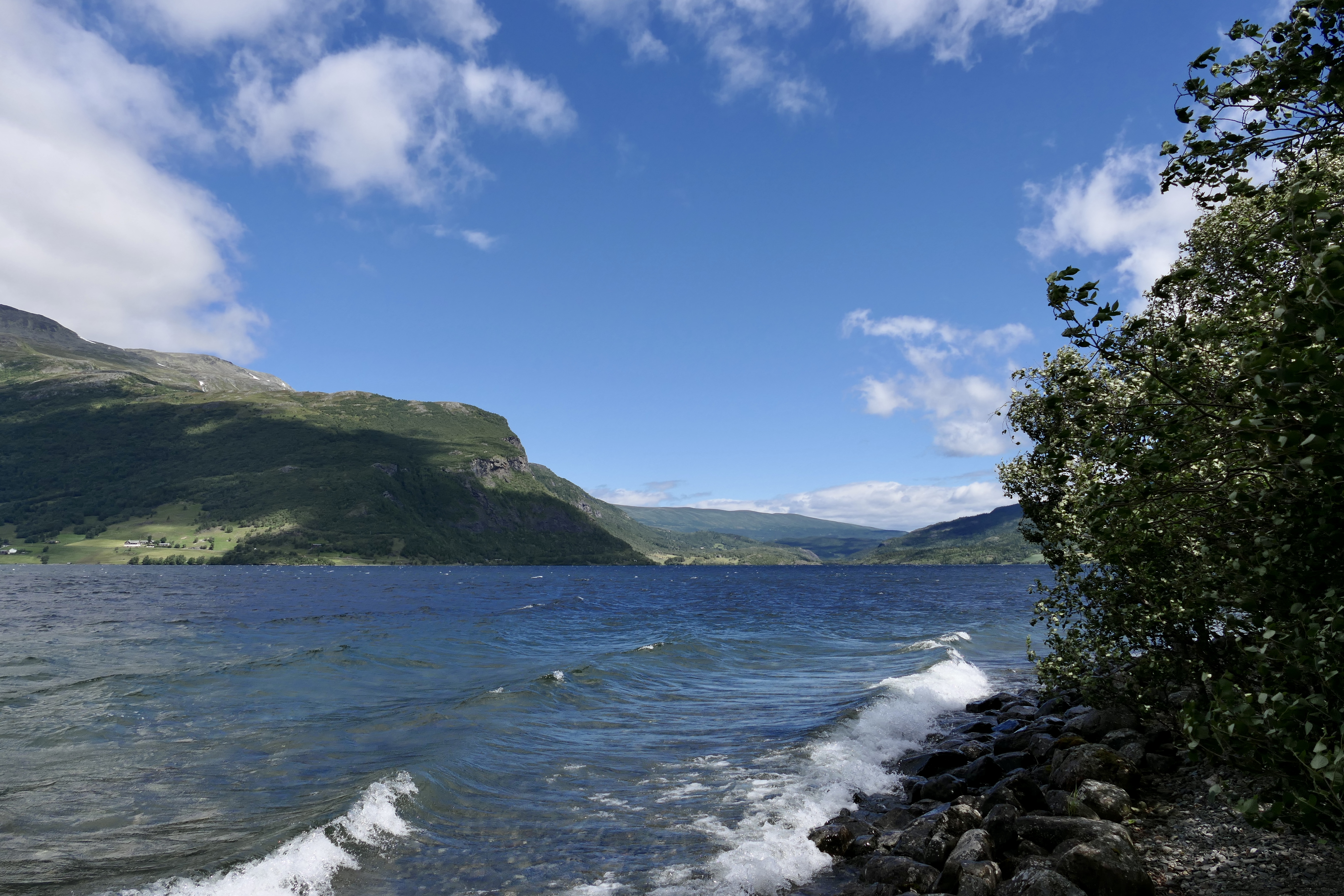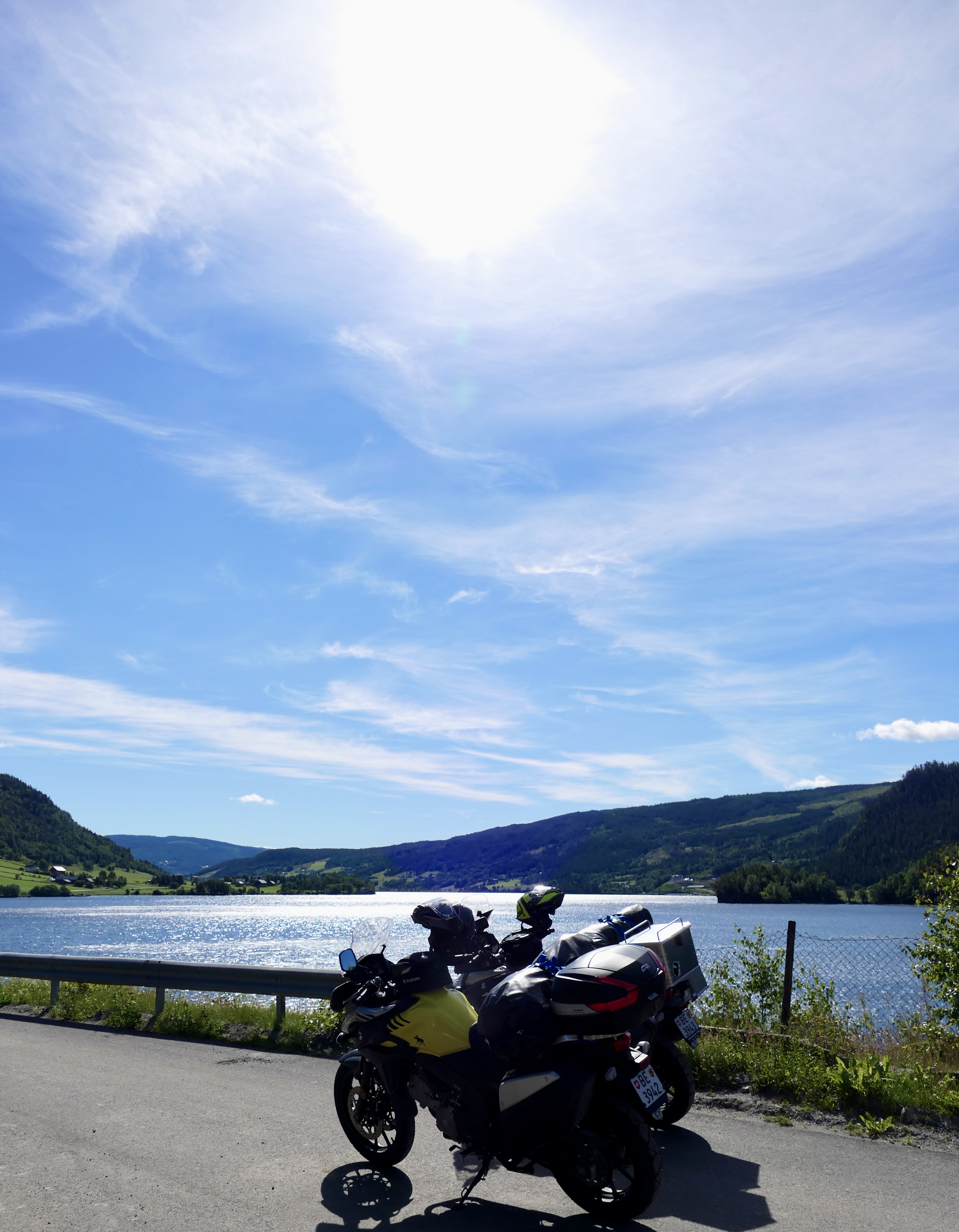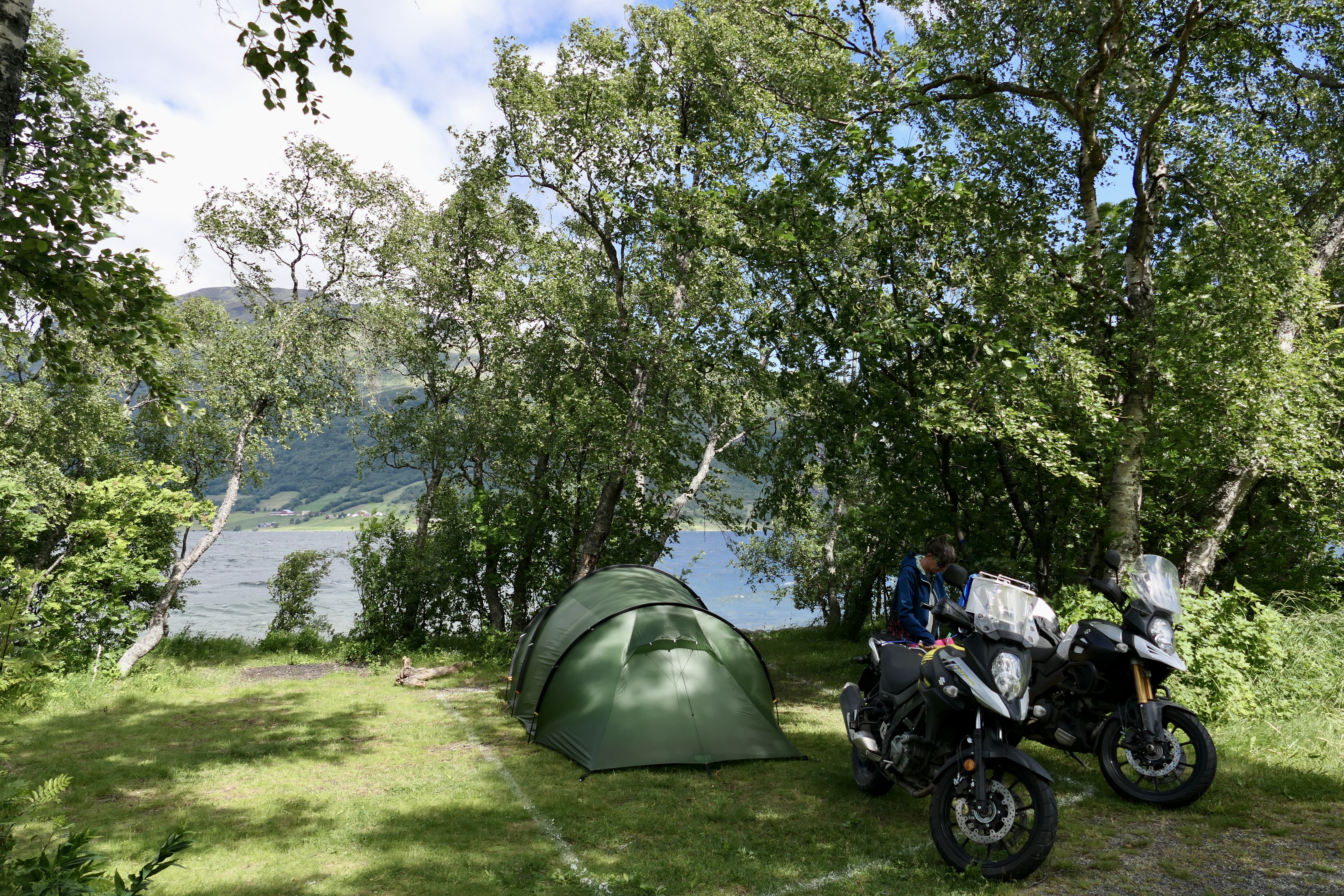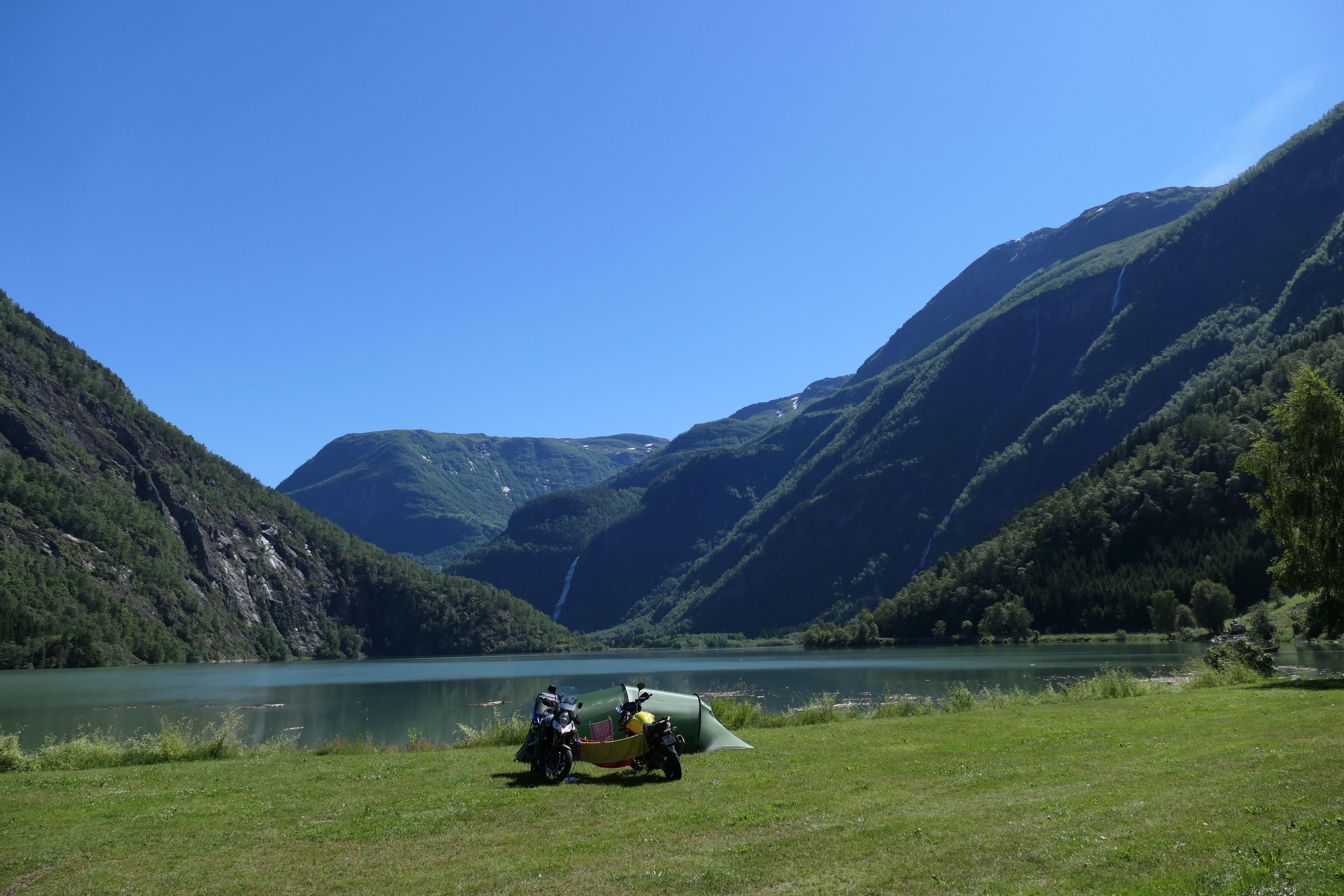 Heute wollten wir gemütlich im Städchen Skjolden einkaufen, aber dummerweise legte heute Morgen ein Mega-Kreuzfahrtschiff hier an und die Passagiere hatten genau zu diesem Zeitpunkt Landgang….. so schwirrten sie also wie 2-beinige Ameisen umher und wir gingen unverrichteter Dinge wieder zum Zelt und kauften später ein. Wir verbrachten den Nami mit lesen und genossen den schönen Campingplatz bei strahlendem Sonnenschein.
