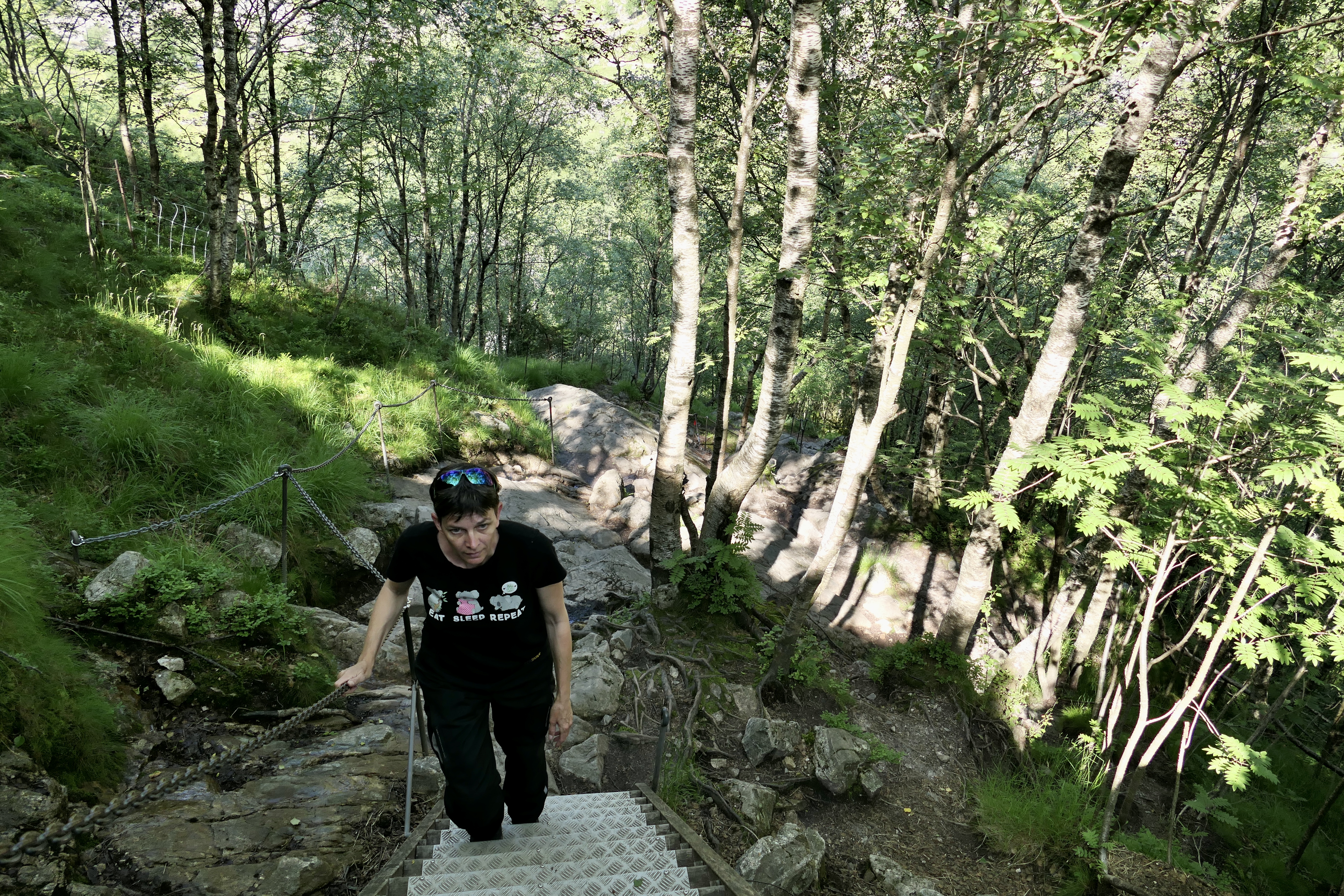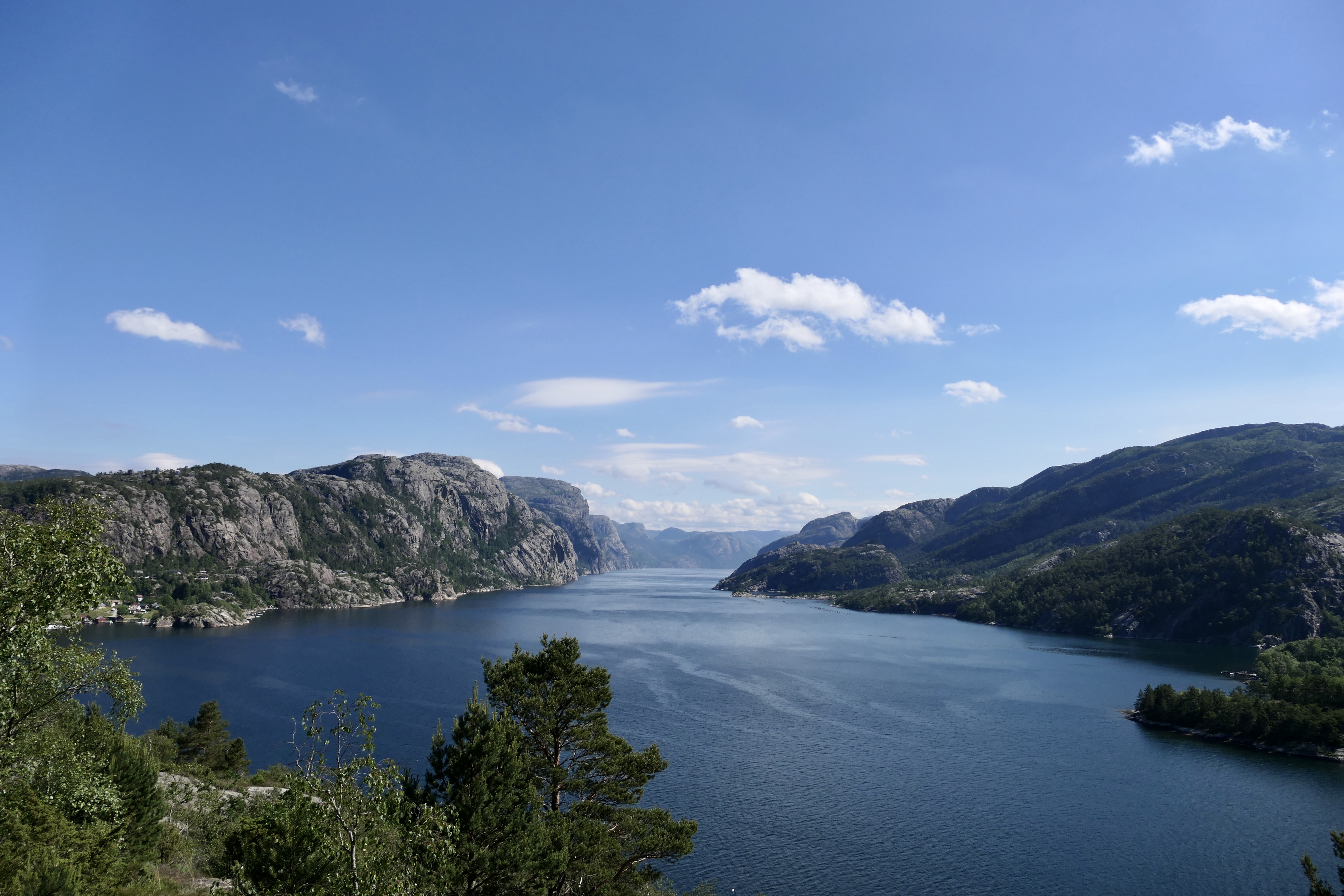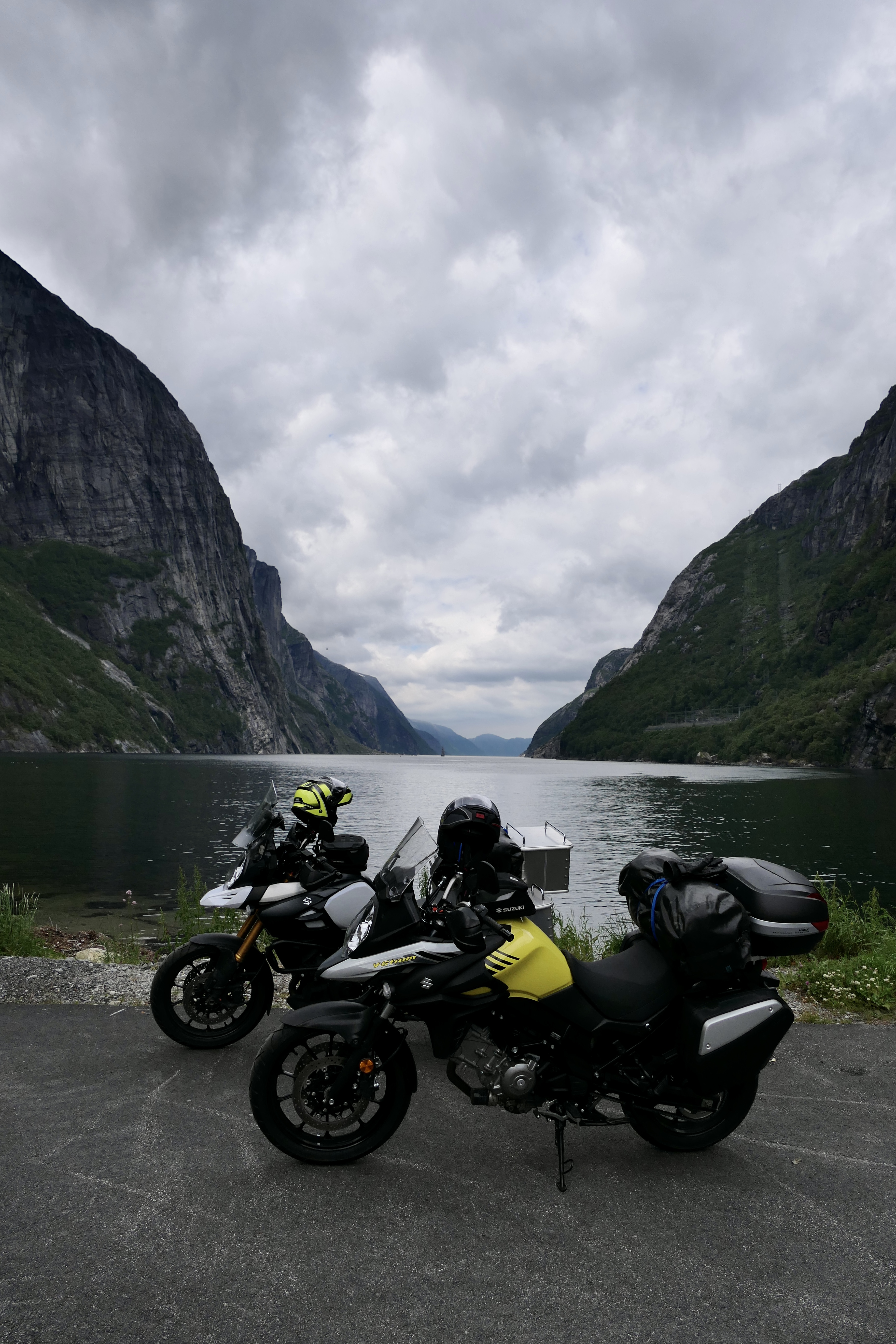 Wir fuhren wieder gegen Westen und machten unterwegs einen Abstecher zum Lysefjord. Der Weg dorthin führt über 28 Haarnadelkurven und die letzte ist im 1.1 km langen Tunnel. Das Wetter war sehr abwechslungsreich, von kühl, neblig, sonnig, regnerisch bis sehr warm. Der Campingplatz liegt direkt am Frafjord und ist wunderschön.