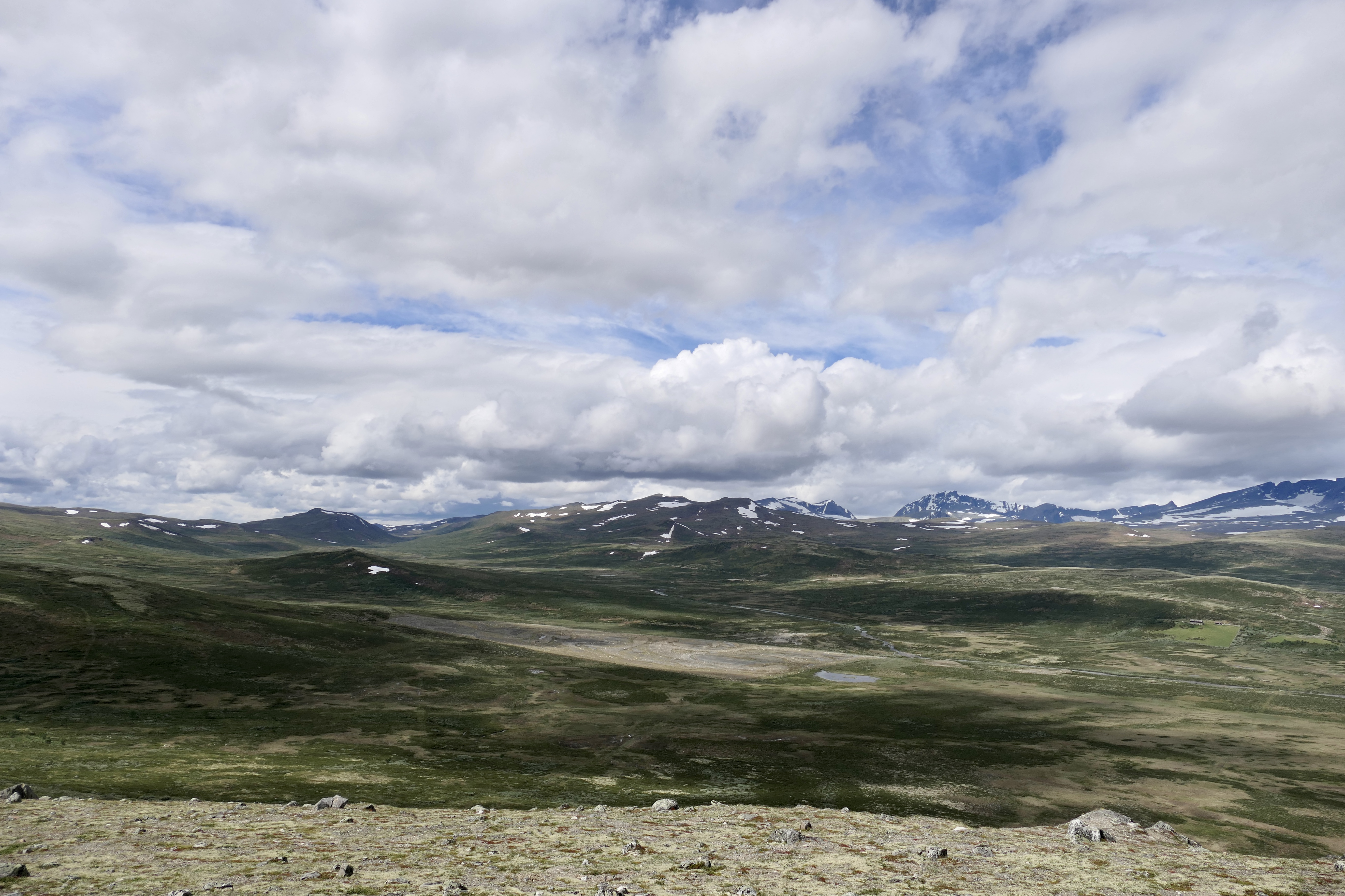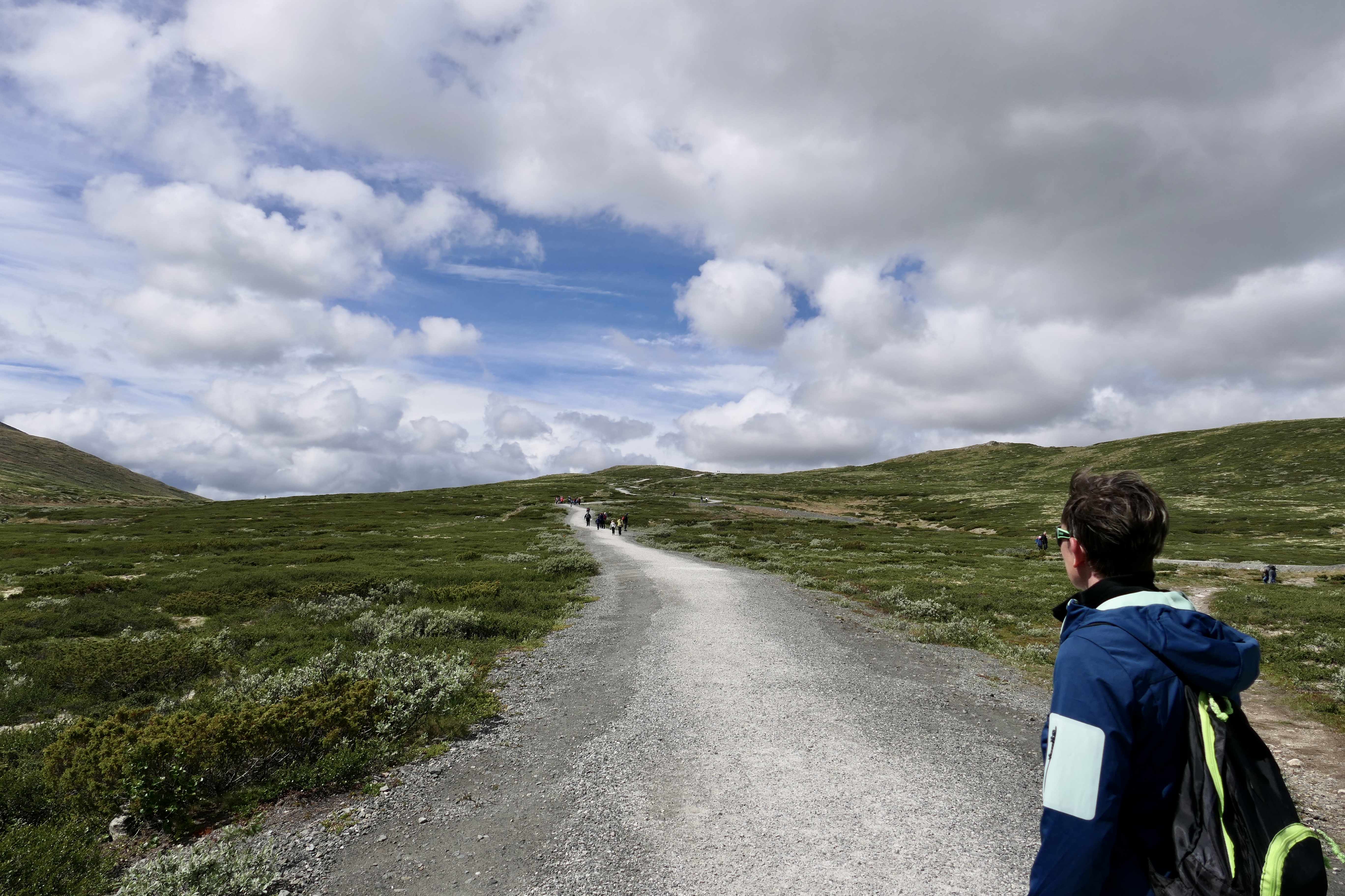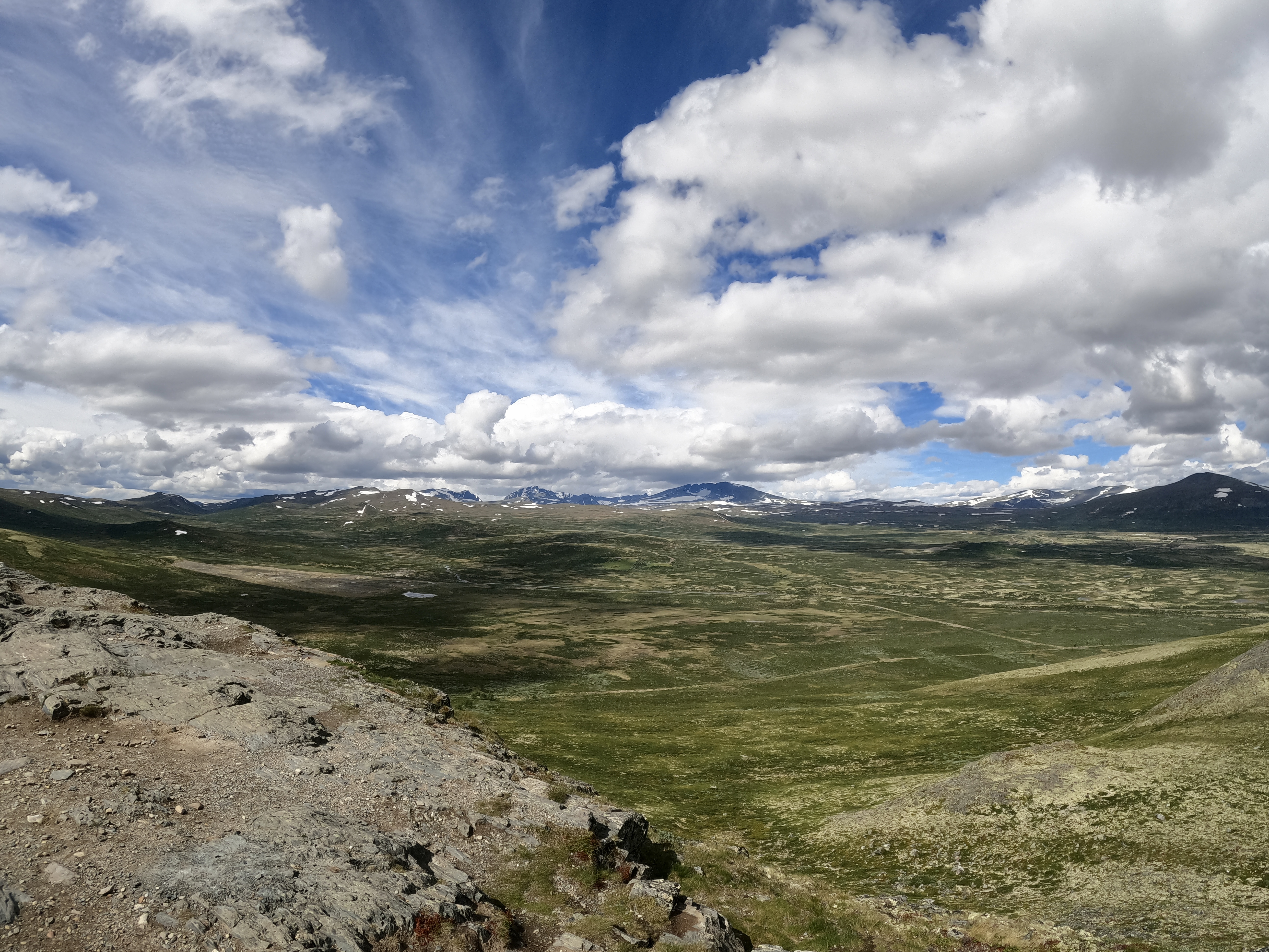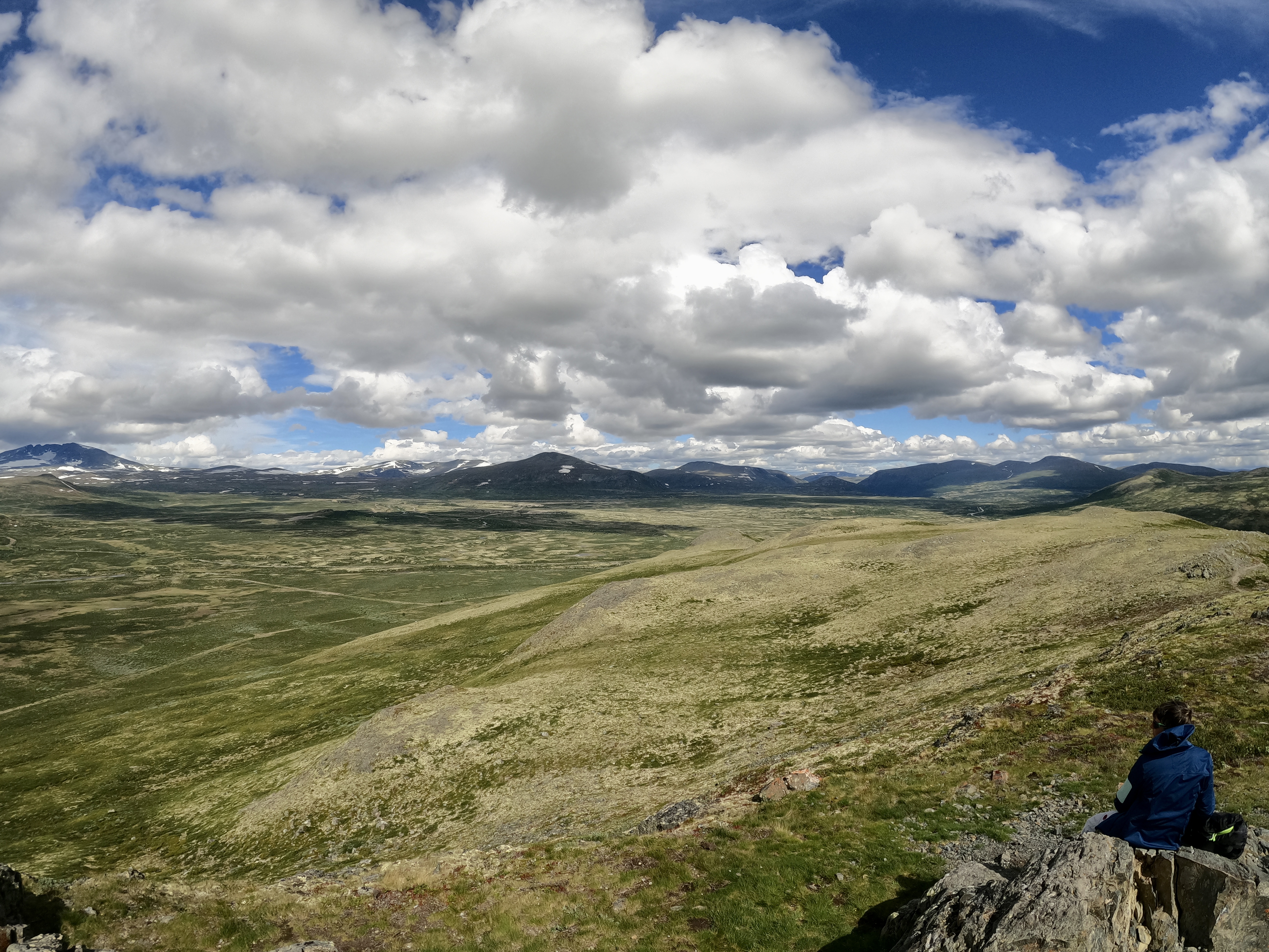 Heute machten wir einen Ausflug zum Aussichtspunkt Snohetta im Dovrefjell Nationalpark. Auf dem Parkplatz tauschten wir unsere Töffklamotten in Wanderklamotten um und machten uns auf den Weg zum Aussichtspunkt. Die Aussicht seht ihr unten…