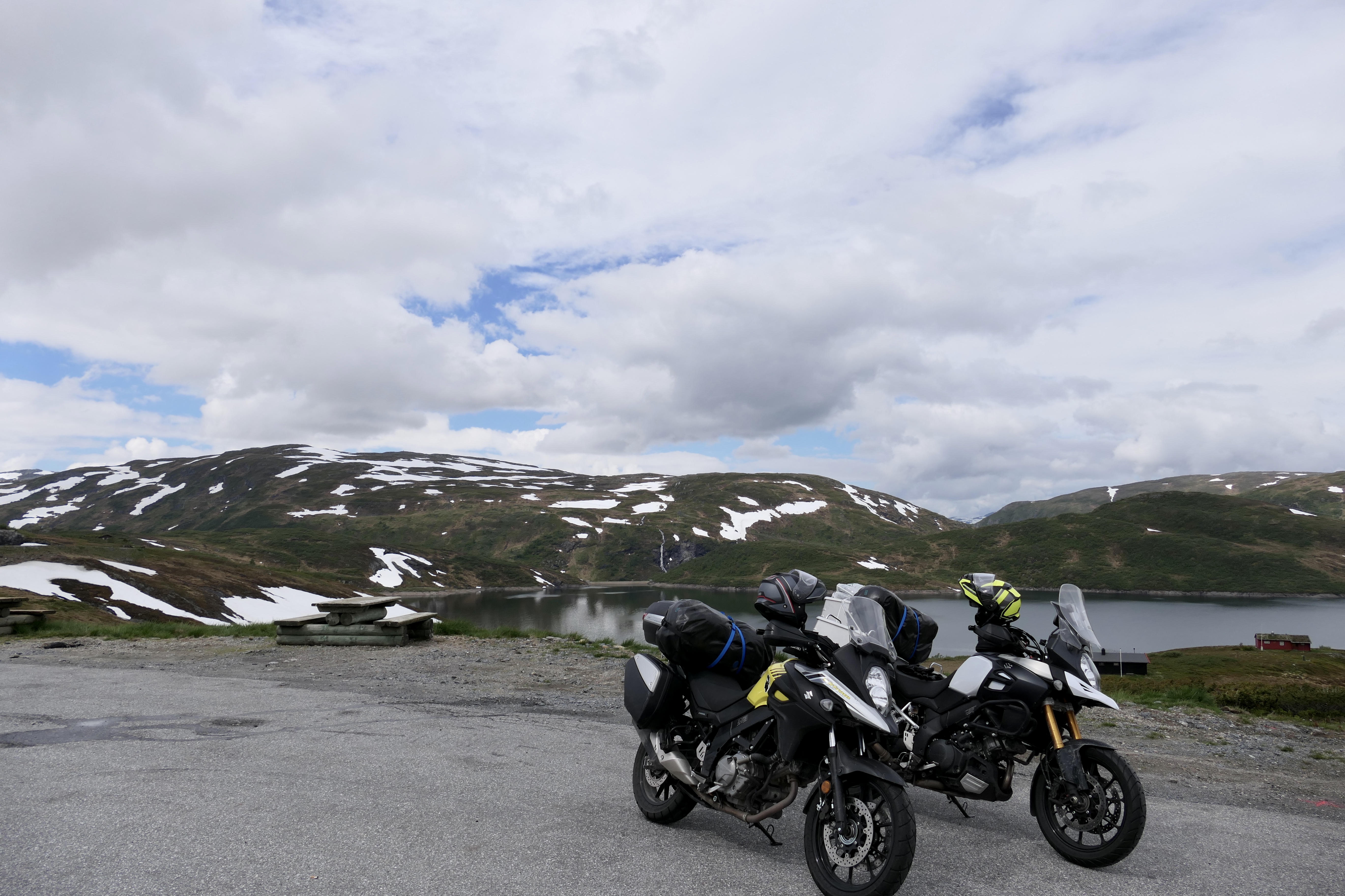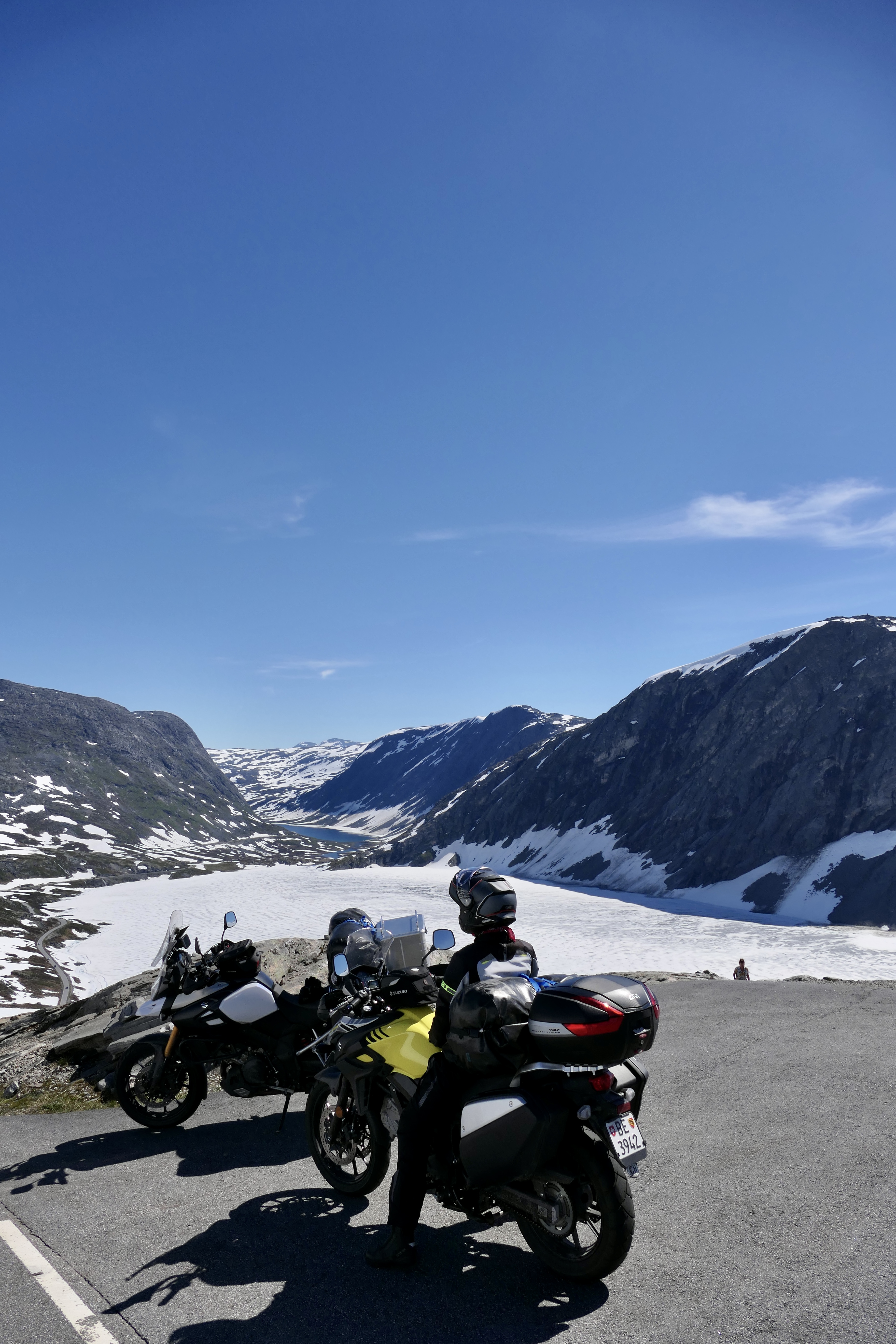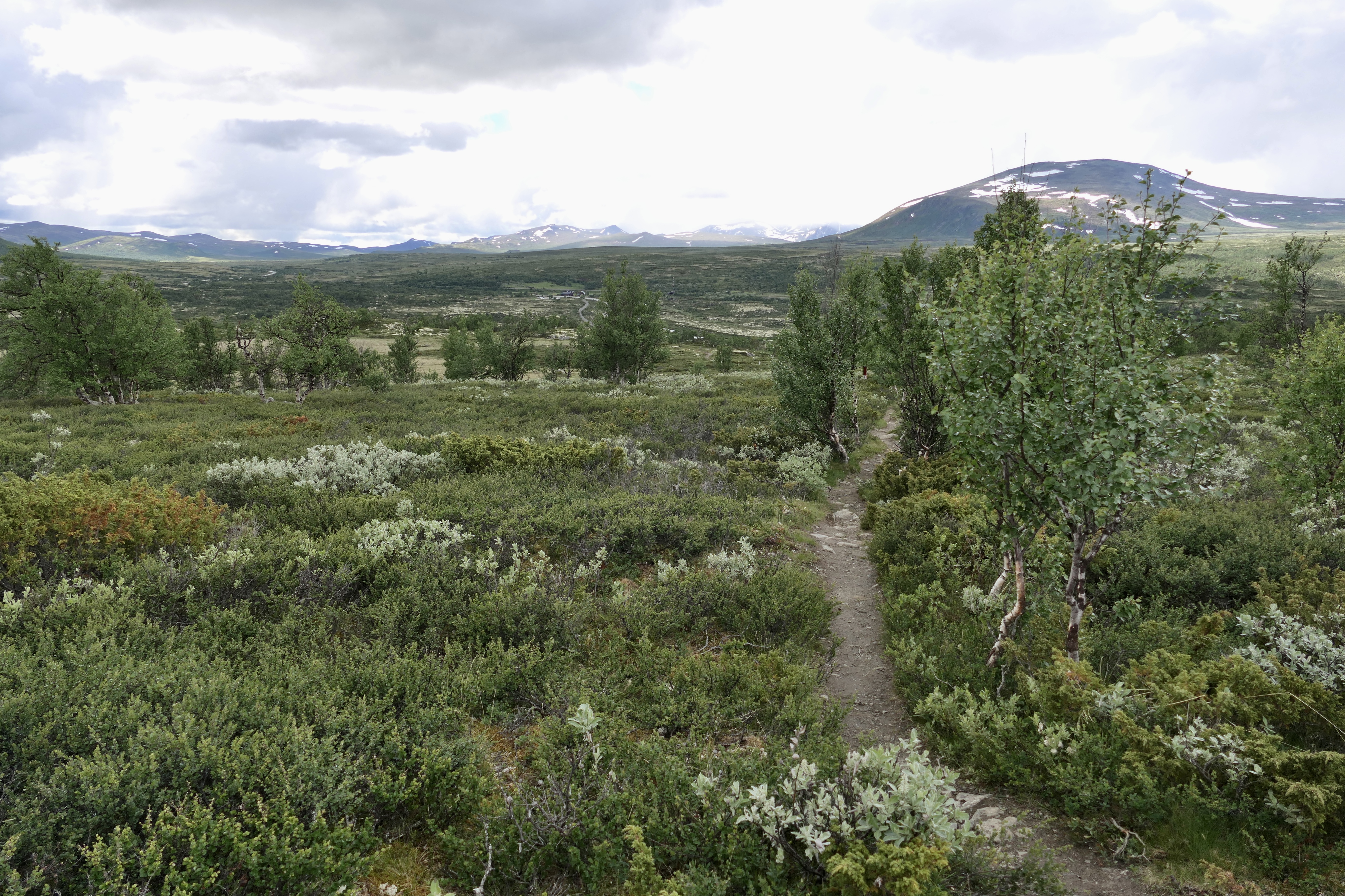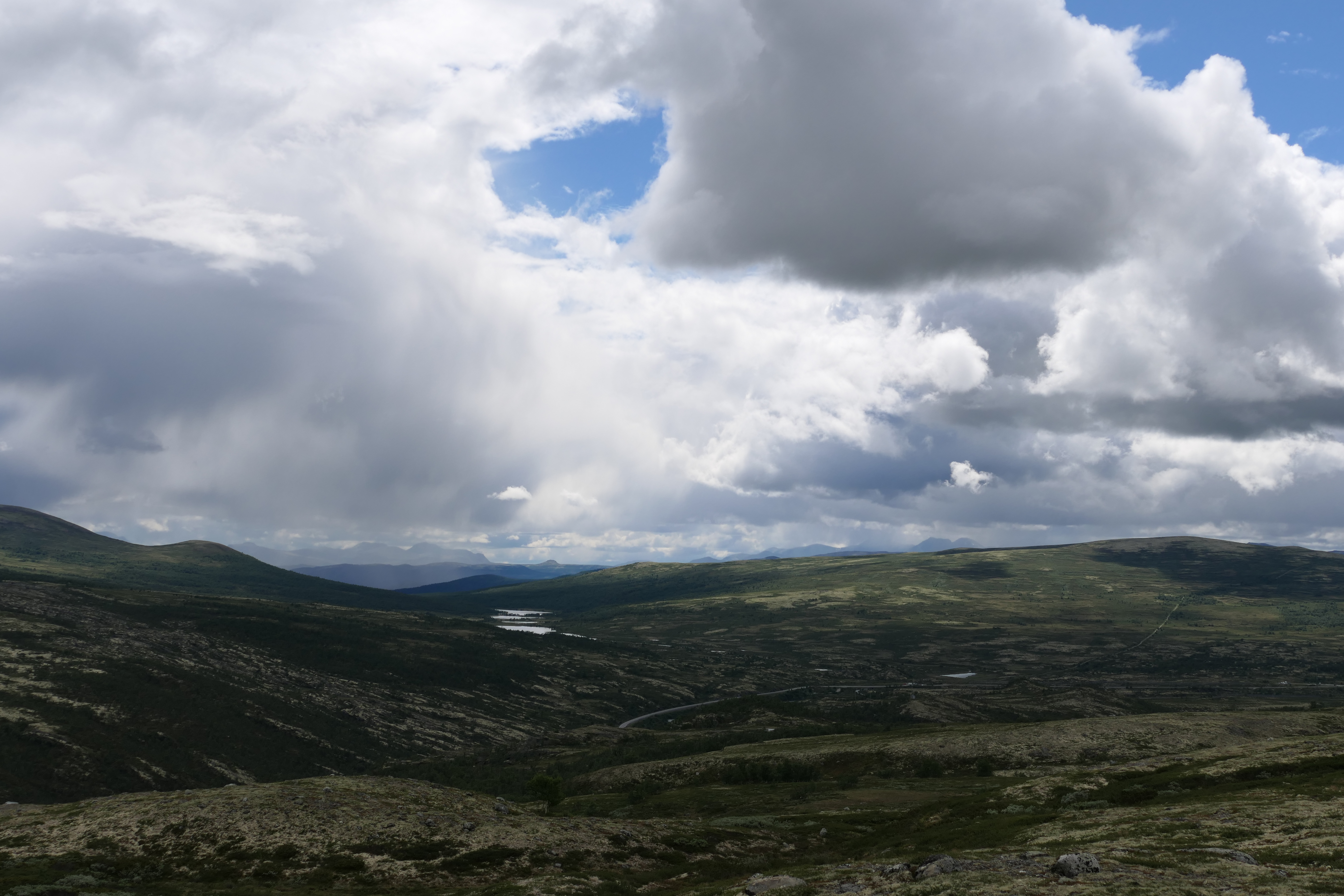 Heute machten wir einen Ausflug zum Aussichtspunkt Snohetta im Dovrefjell Nationalpark. Auf dem Parkplatz tauschten wir unsere Töffklamotten in Wanderklamotten um und machten uns auf den Weg zum Aussichtspunkt. Die Aussicht seht ihr unten…