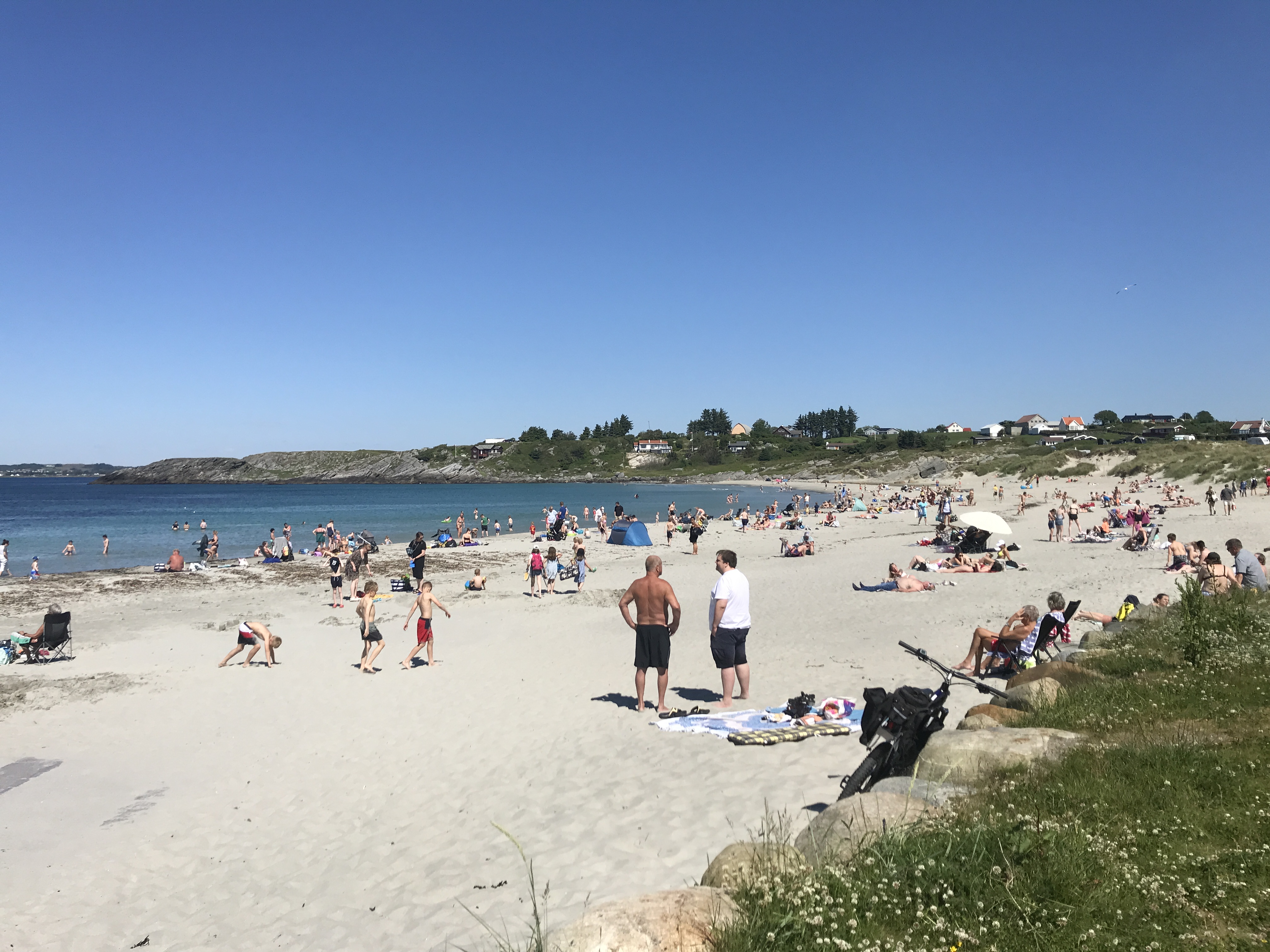 Wir schauten uns kurz den Manofassen-Wasserfall an. Danach fuhren wir zum Olbergstranden (bei Sola), mit der Idee dort eventuell zu baden – wir liessen es aber bleiben, da das Meer gerade mal 11.5 Grad kalt war…