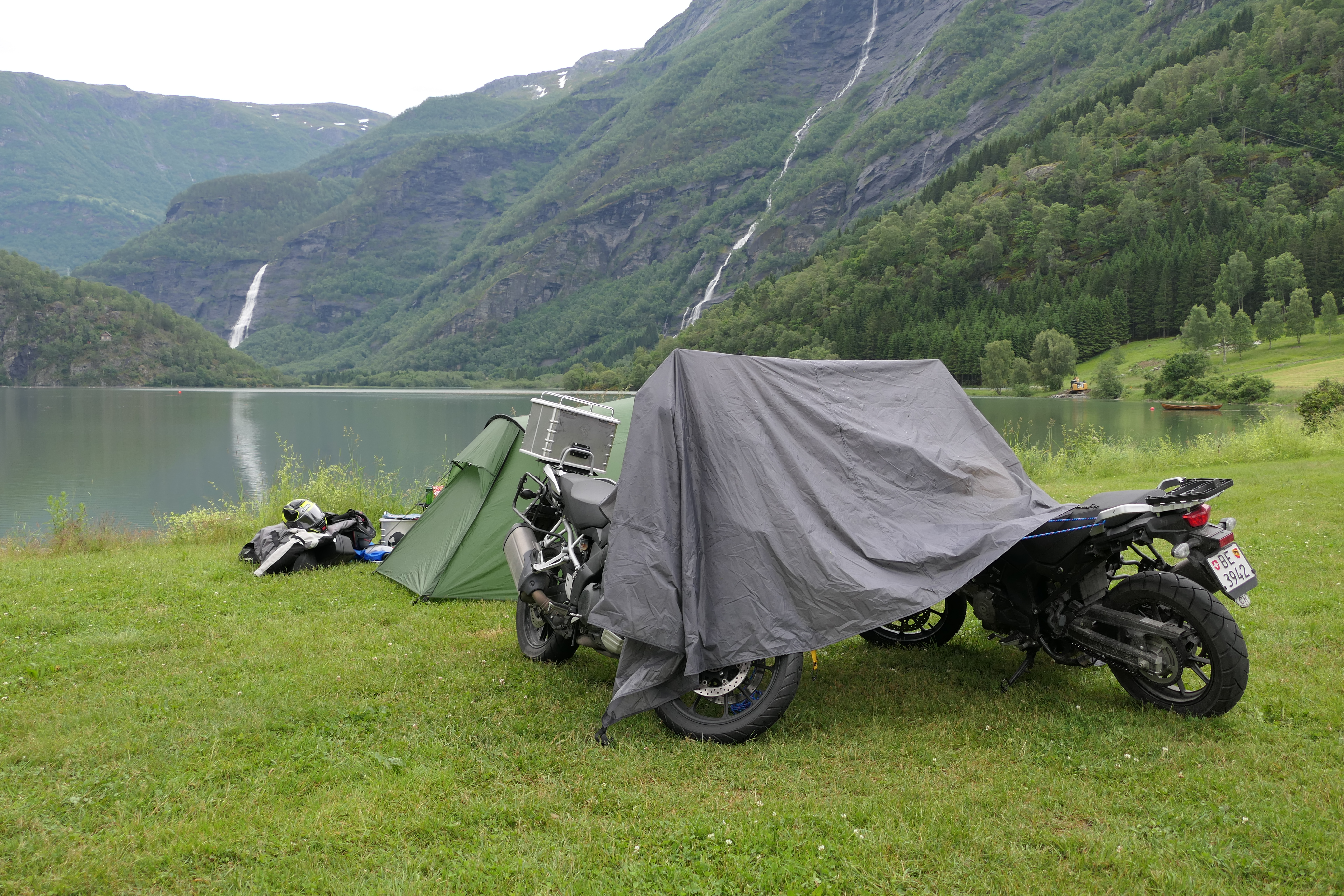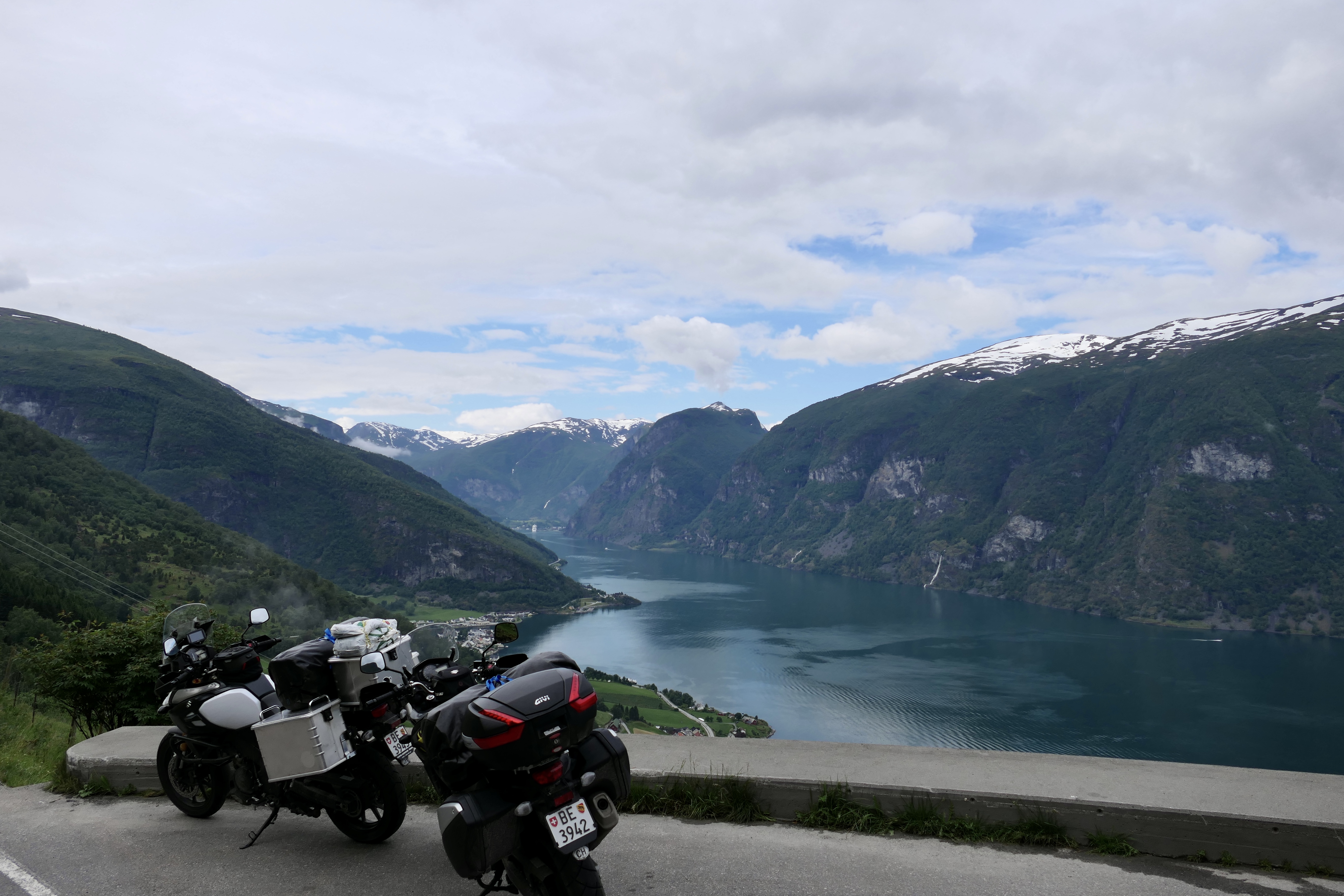 Heute mussten wir im Regen unsere sieben Sachen packen und geregnet hat‘s dann fast den ganzen Tag. Die Regenkombis sind aber dicht und so sind wir gut in Laerdal angekommen. Unterwegs hätte es mehrere Berge, die höher als 1000m wären, nur leider haben wir sie nicht wirklich gesehen, da alles verhängt war.