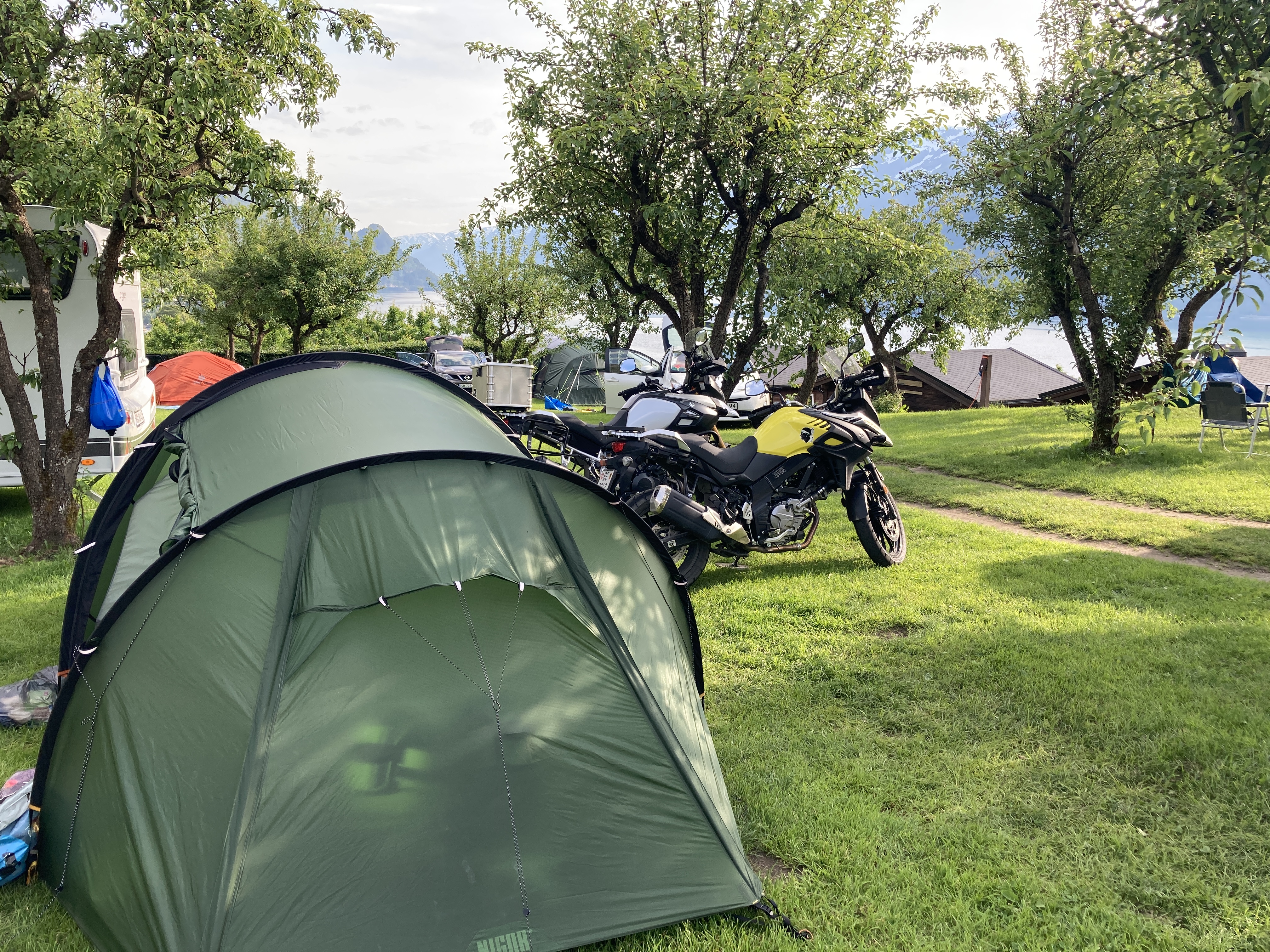 Heute war’s relativ warm, so um die 25 Grad und sehr sonnig. Zum Abkühlen nahmen wir am Abend noch ein Bad im See, der beim Campingplatz liegt – war ziemlich frisch, aber hat gut getan.