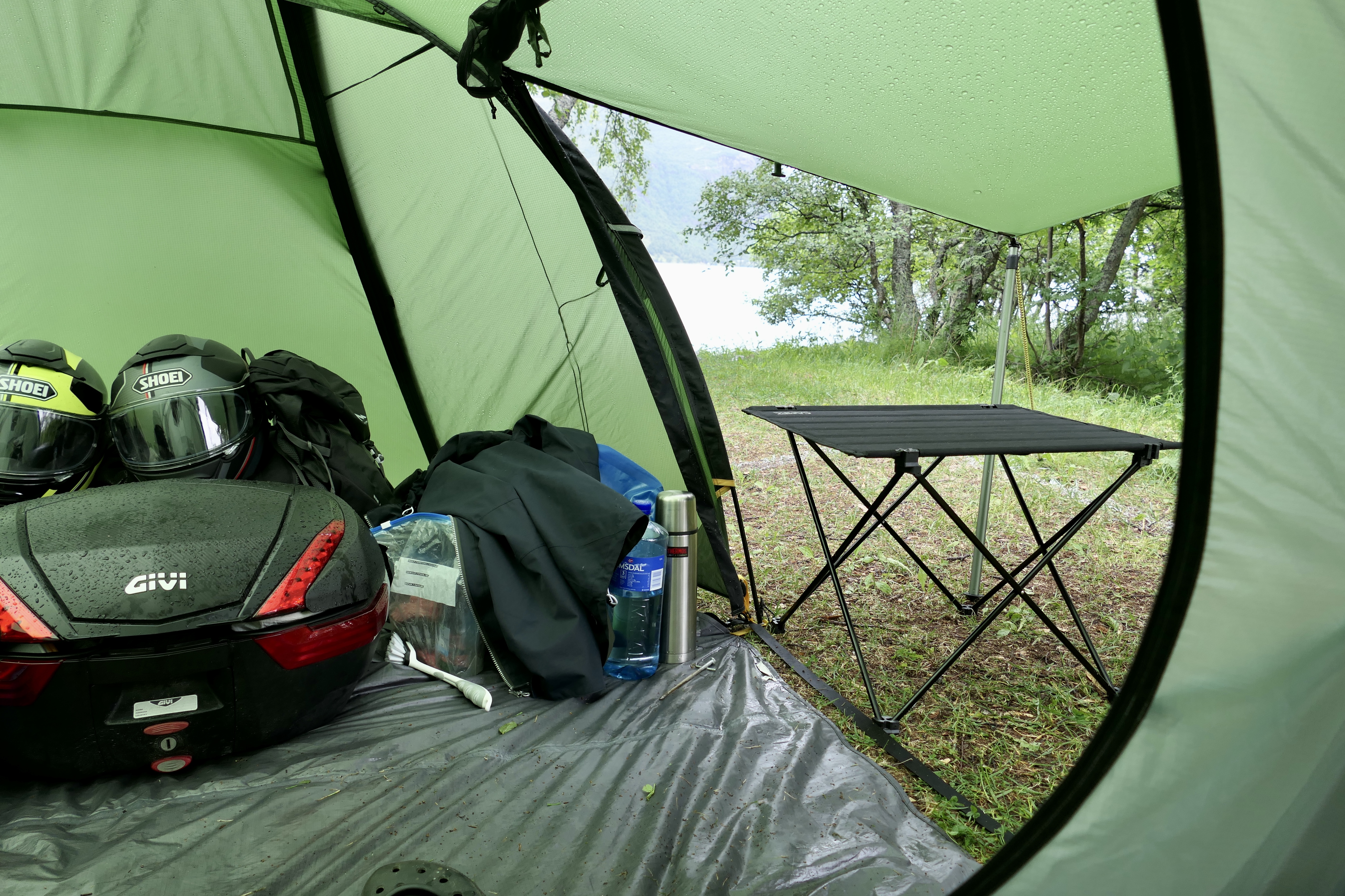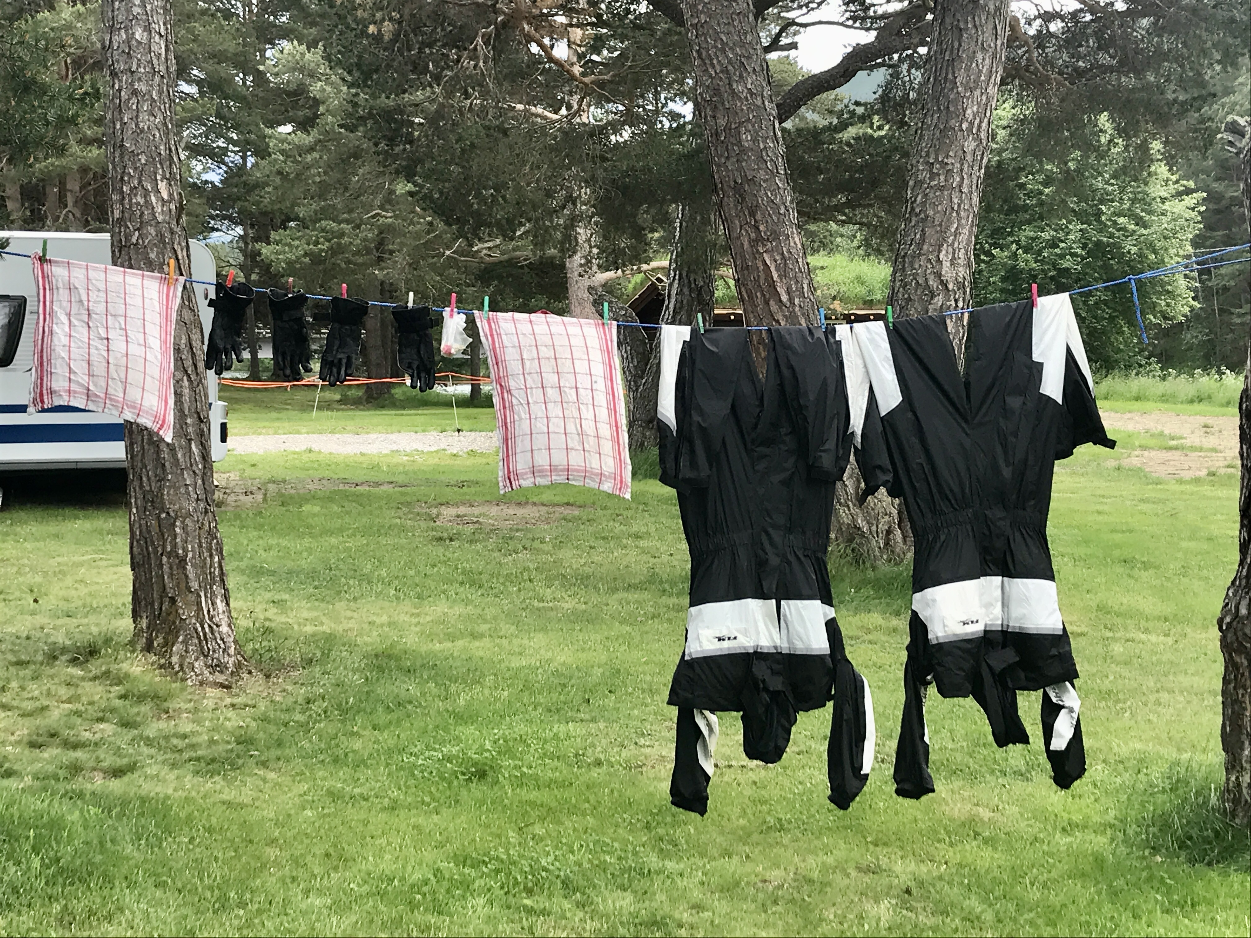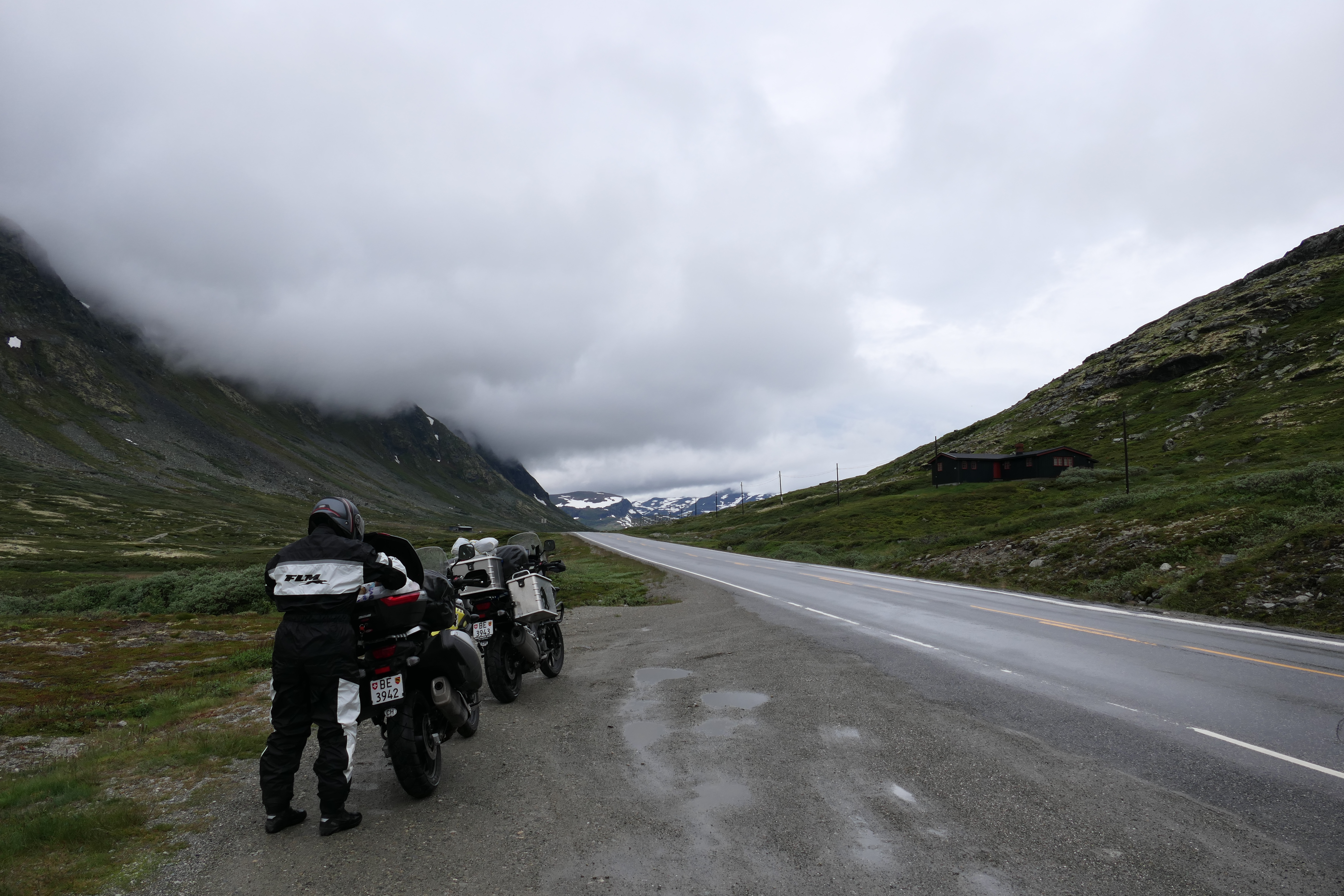 Heute hat’s vom Morgen bis am Abend immer geregnet. Zum Glück konnten wir das Zelt noch trocken einpacken. Doch leider sind unsere Regenkombis und die Regenhandschuhe nicht wirklich dicht – so übernachten wir heute in einer Hytter und können grad alles trocknen.