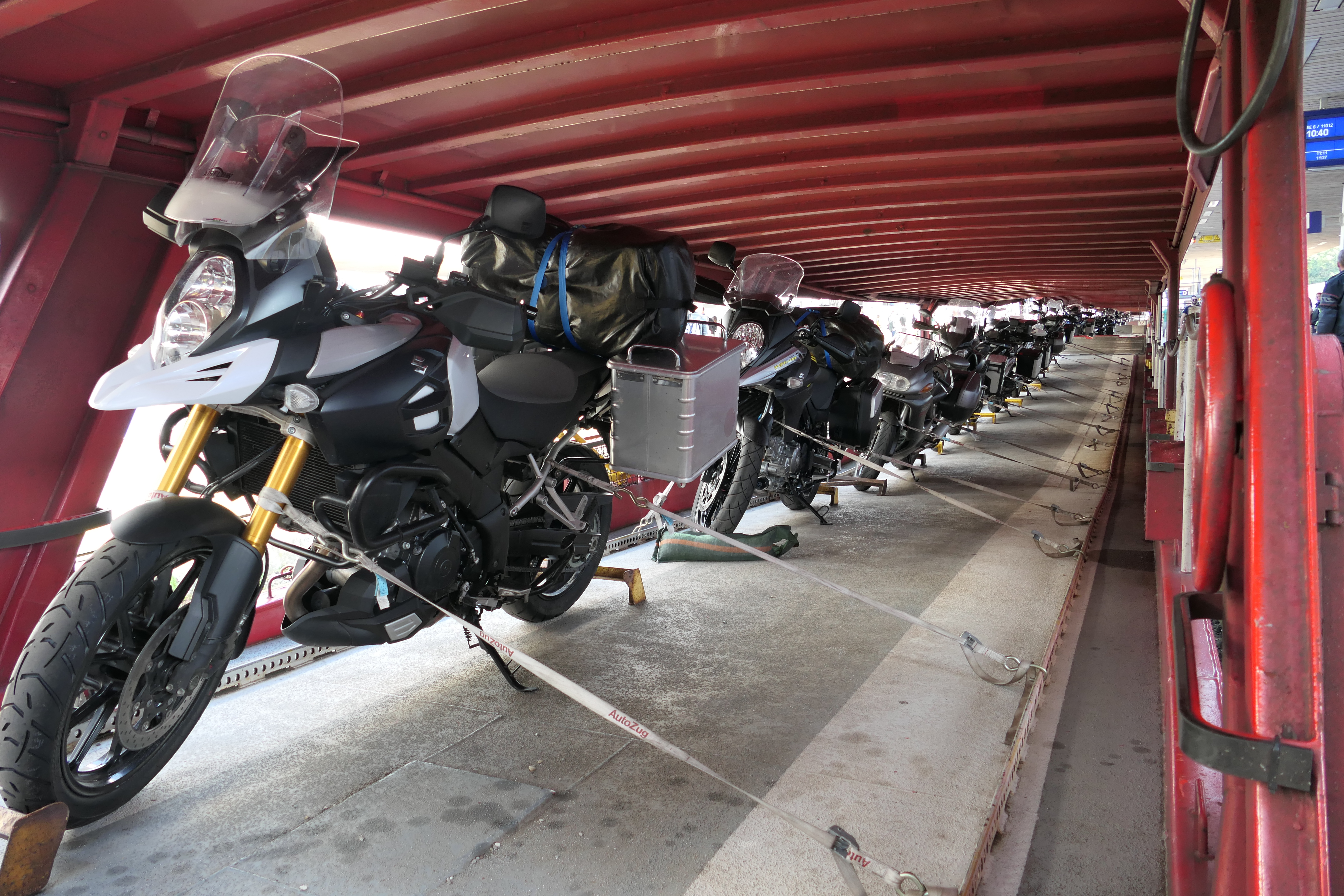Mit zweistündiger Verspätung beim Autoreisezug gings dann endlich los – durstig, verschwitzt und müde, ab Richtung Hamburg. Beim verladen mit dem Töff heisst es “Rübe einziehen“, die Höhe beträgt nur 1.58m…
