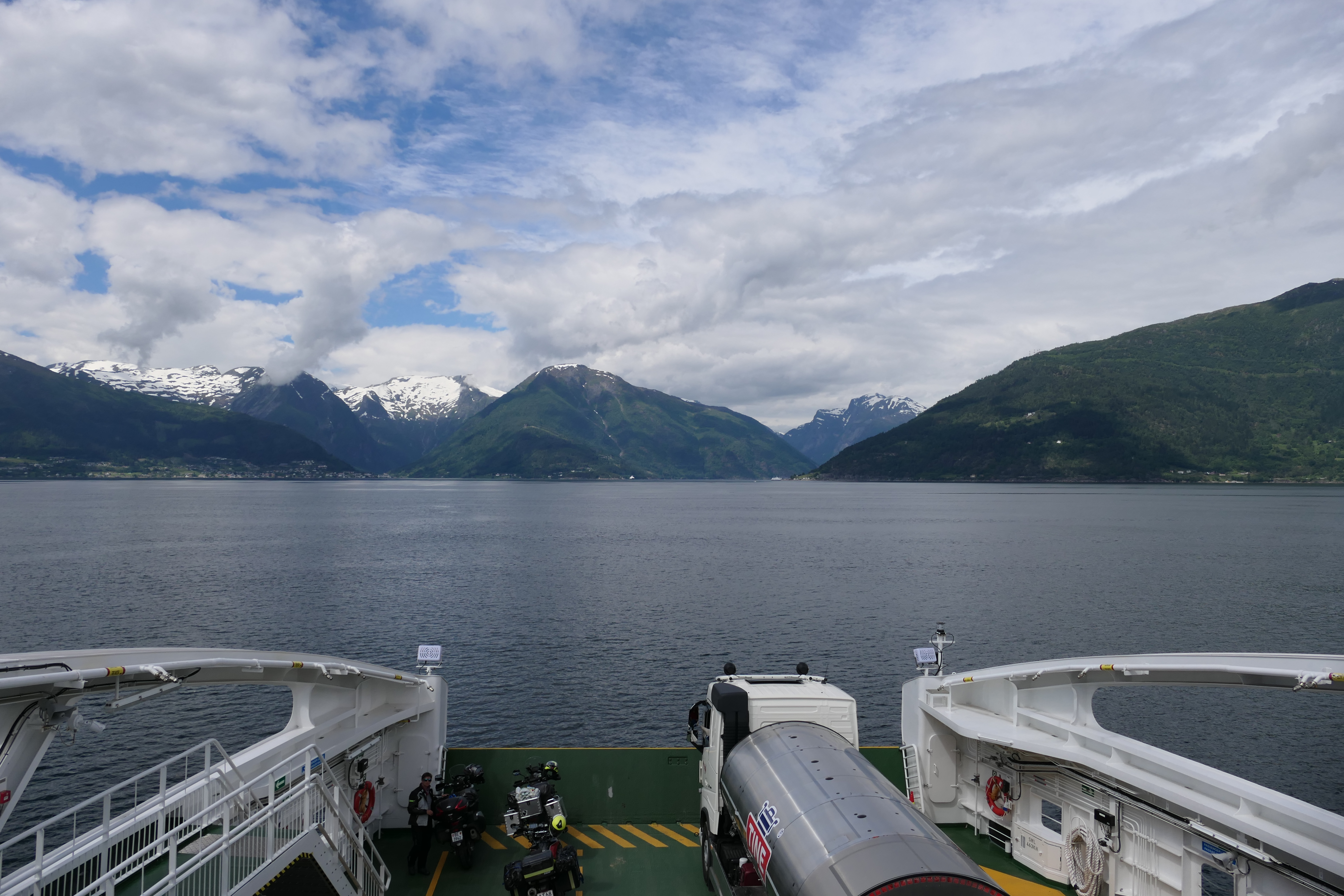 Dienstag, 28.6.22: Laerdal – Auerlandsfjord – Flam – Vinje – Vik – Vangsnes Fähre nach Hella – Sognedalsfjora – Skjolden (270 km)