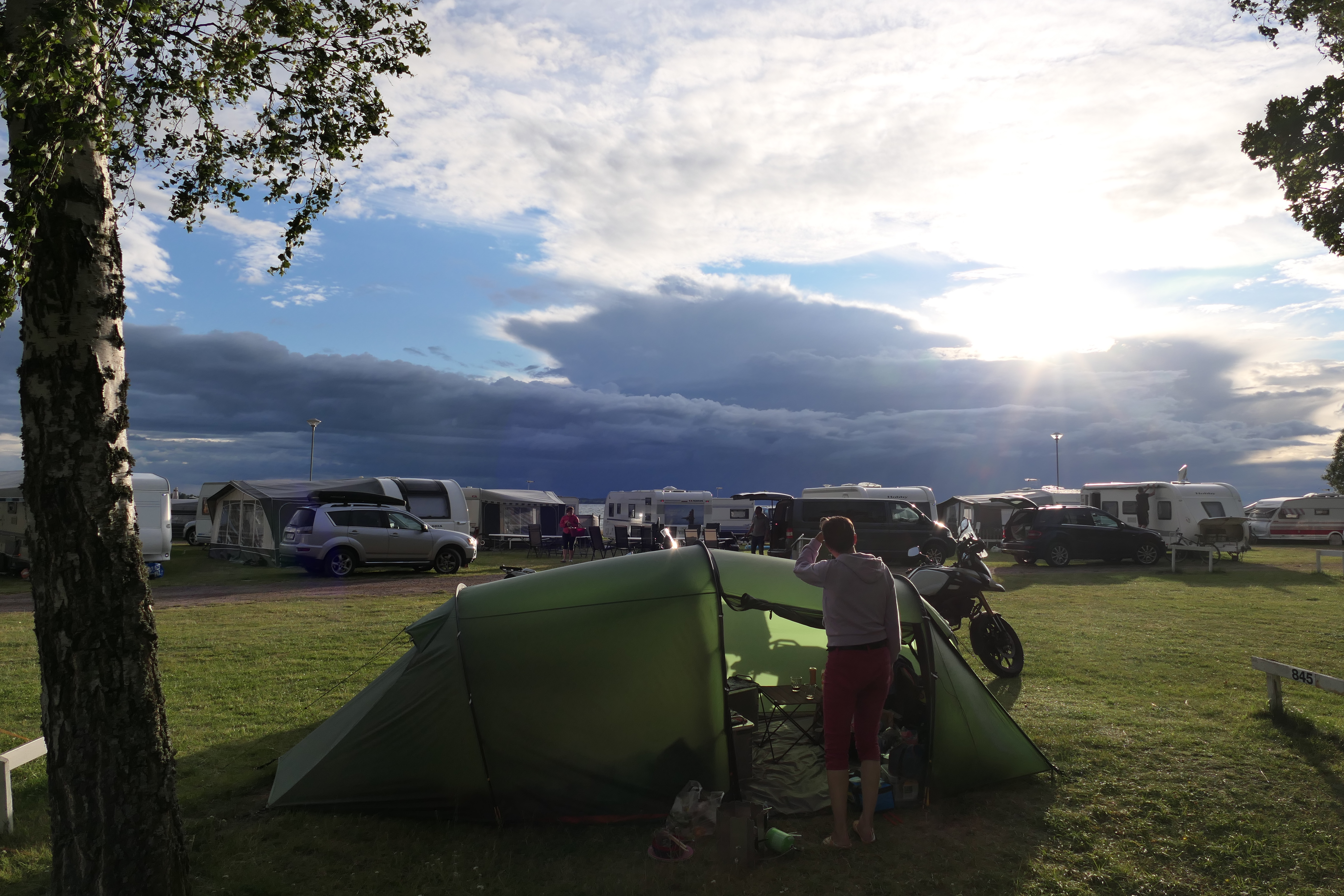 So, nun sind wir also in Schweden. Abgefahren sind wir bei schönem Wetter, aber hier regnet es gerade wieder… Der Campingplatz ist sehr schön gelegen, aber der Empfang war sehr „kurlig“ und komisch und so düsen wir morgen schon wieder weiter nach Stockholm.