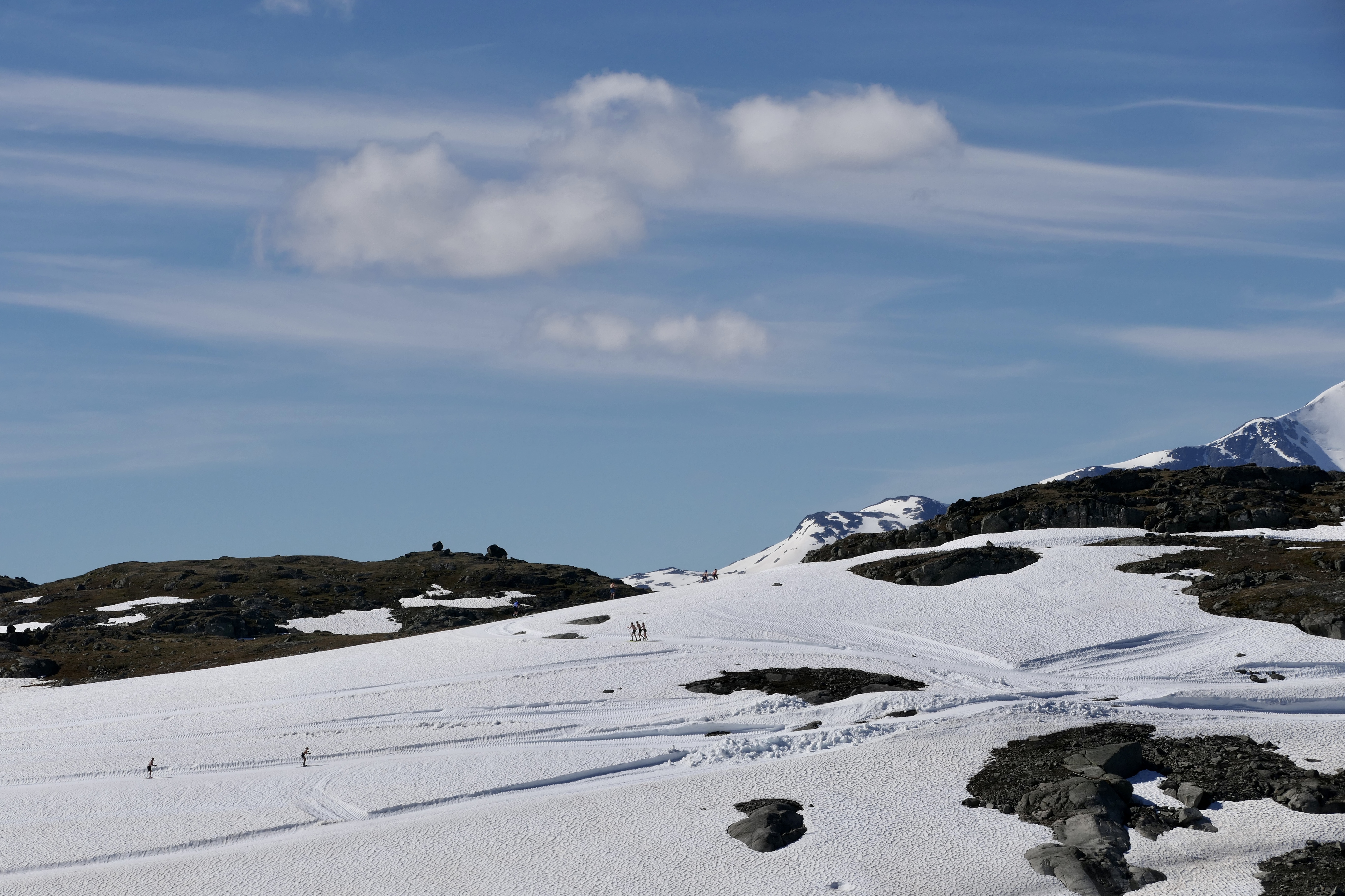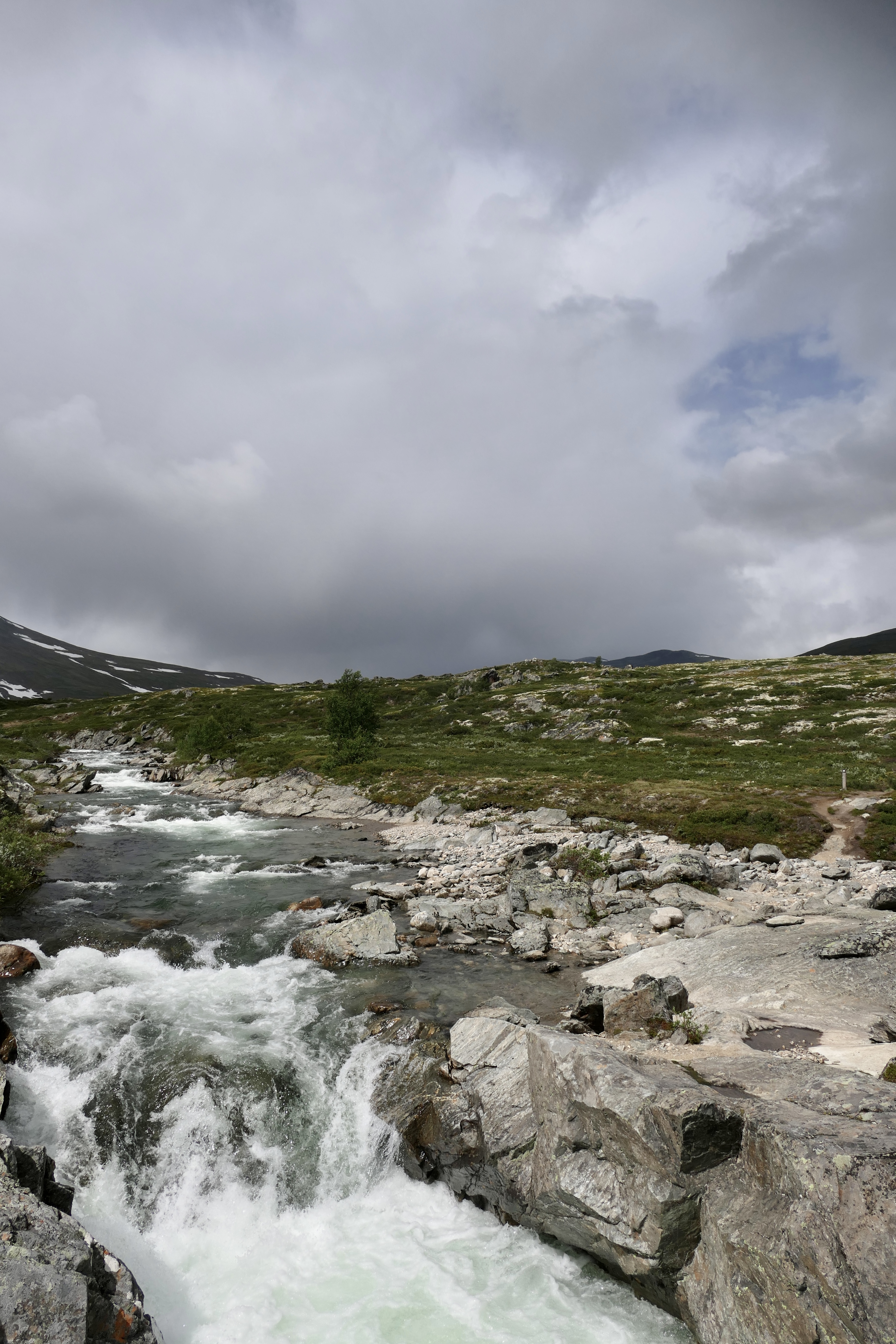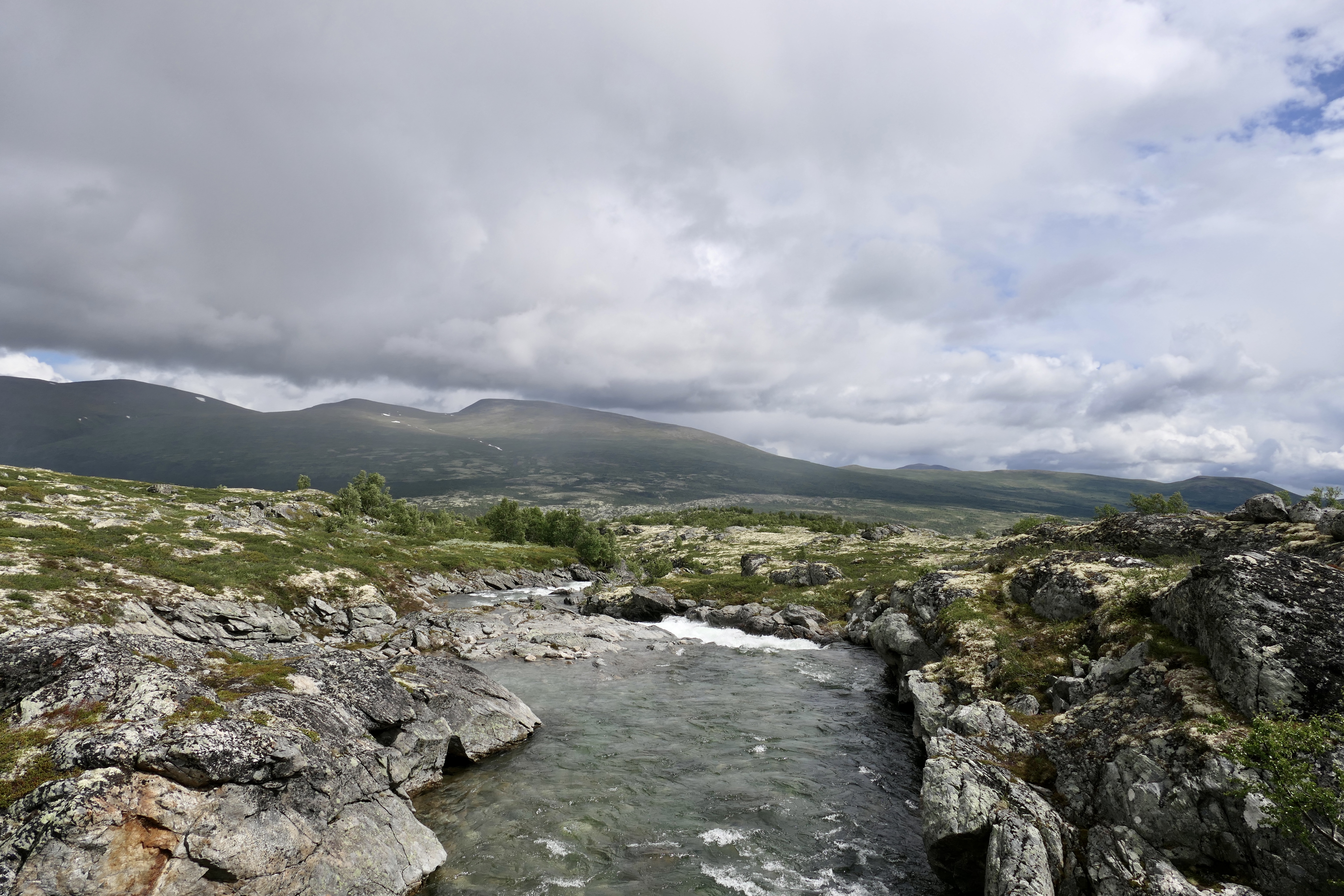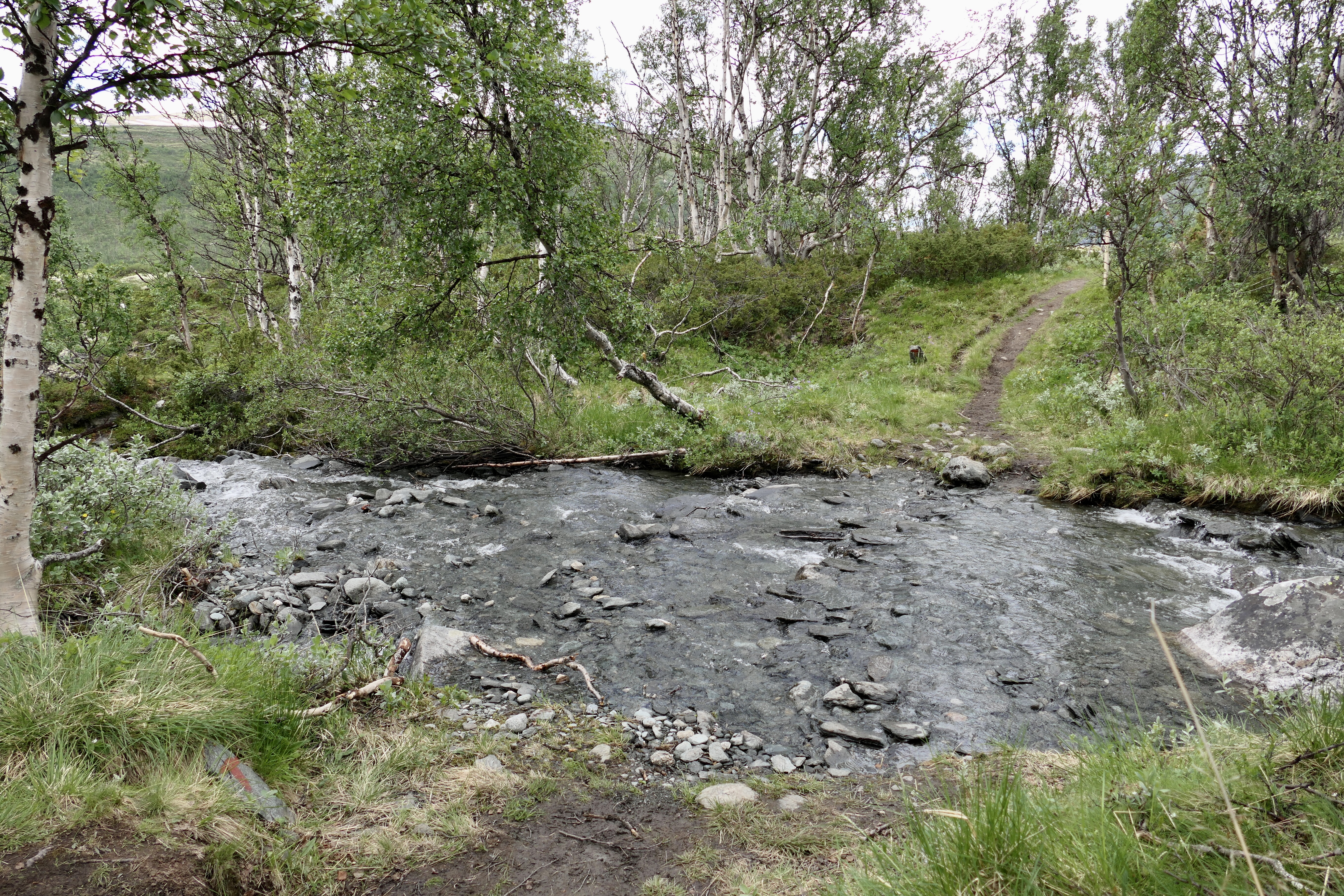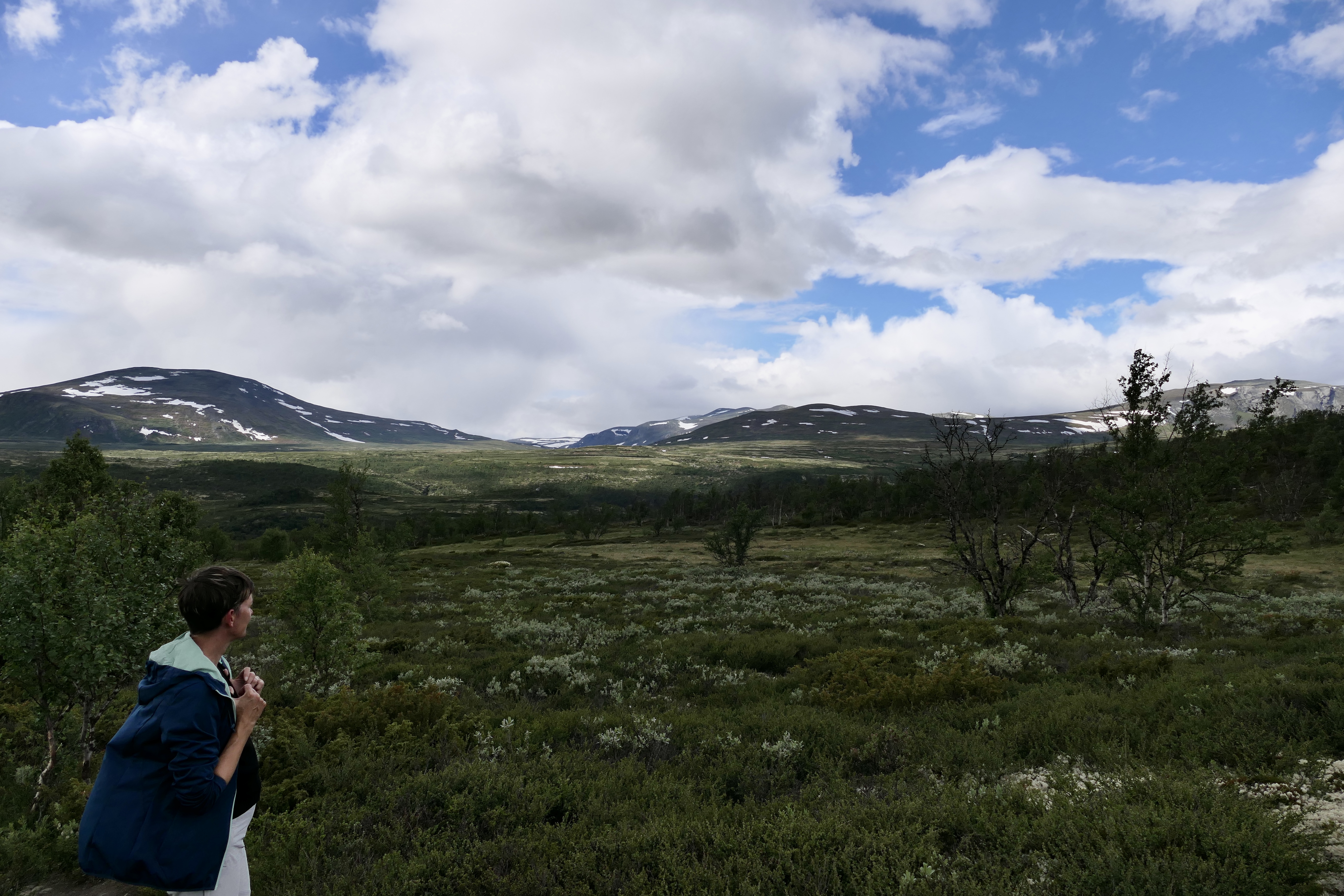 Wir fuhren heute 50 km zurück in die “Prärie“ nach Kongsvoll und starteten dort mit der Wanderung auf dem Moschusweg. Die Wanderung ging durch Schlammwege, über Flüsse und durch kleine Schneefelder, begleitet von Sonnenschein und Sprühregen. In diesem Gebiet könnte man Moschusochsen antreffen – wir haben leider keinen gesehen….