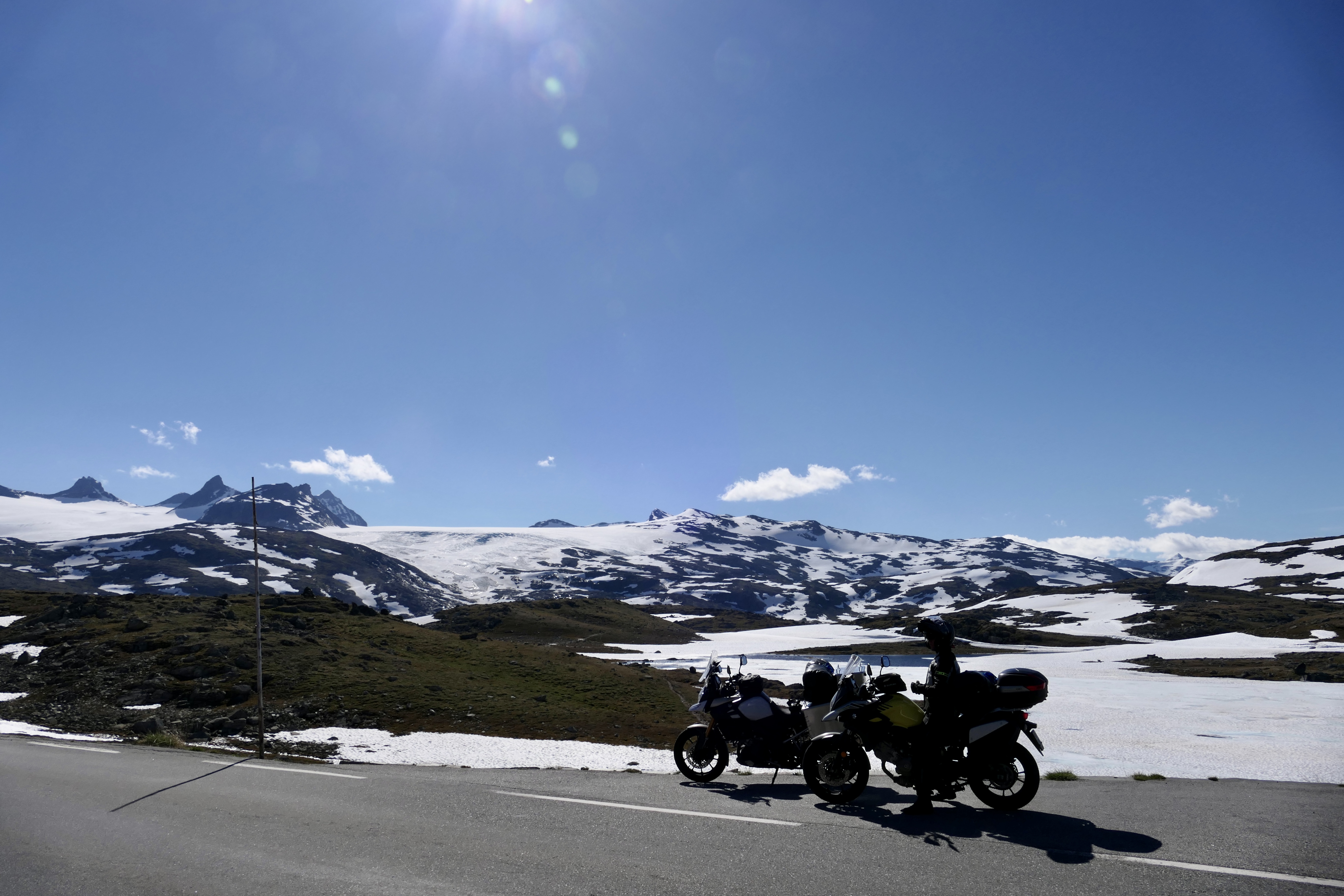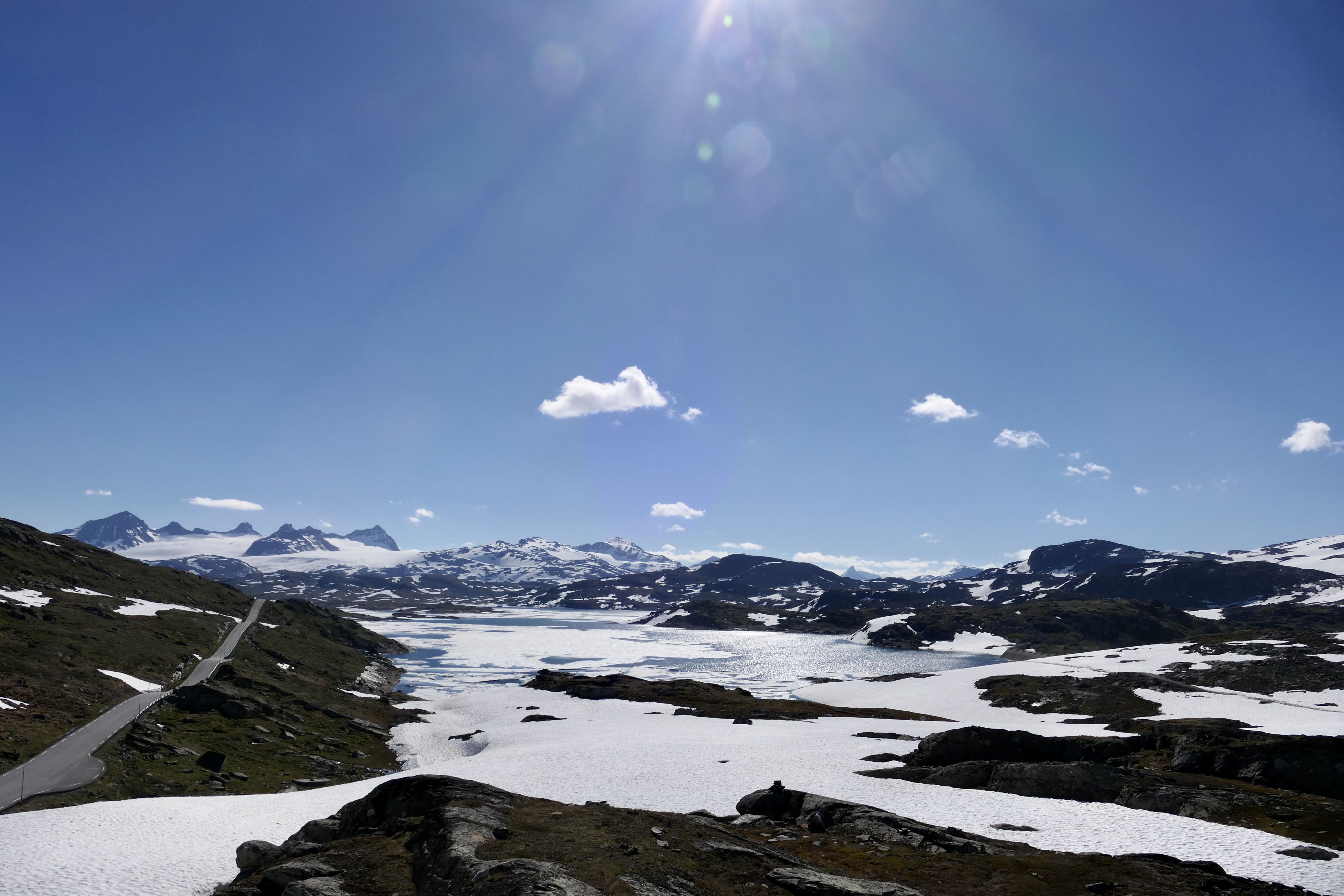 Wir haben unsere 2-Pässe-Rundfahrt bei trockenem Wetter genossen. Die Pässe hier sind etwas anders als in der Schweiz: Ist man oben angekommen, fährt man auf einer Hochebene kilometerlang weiter, meistens hat es noch Schnee dort oben und dann gehts wieder runter auf Meereshöhe. Ständig hat es Schafe und Kühe auf der Strasse und unzählige Tunnels. Heute haben wir mindestens 25 km in Tunnels verbracht, der längste war 11 km.
