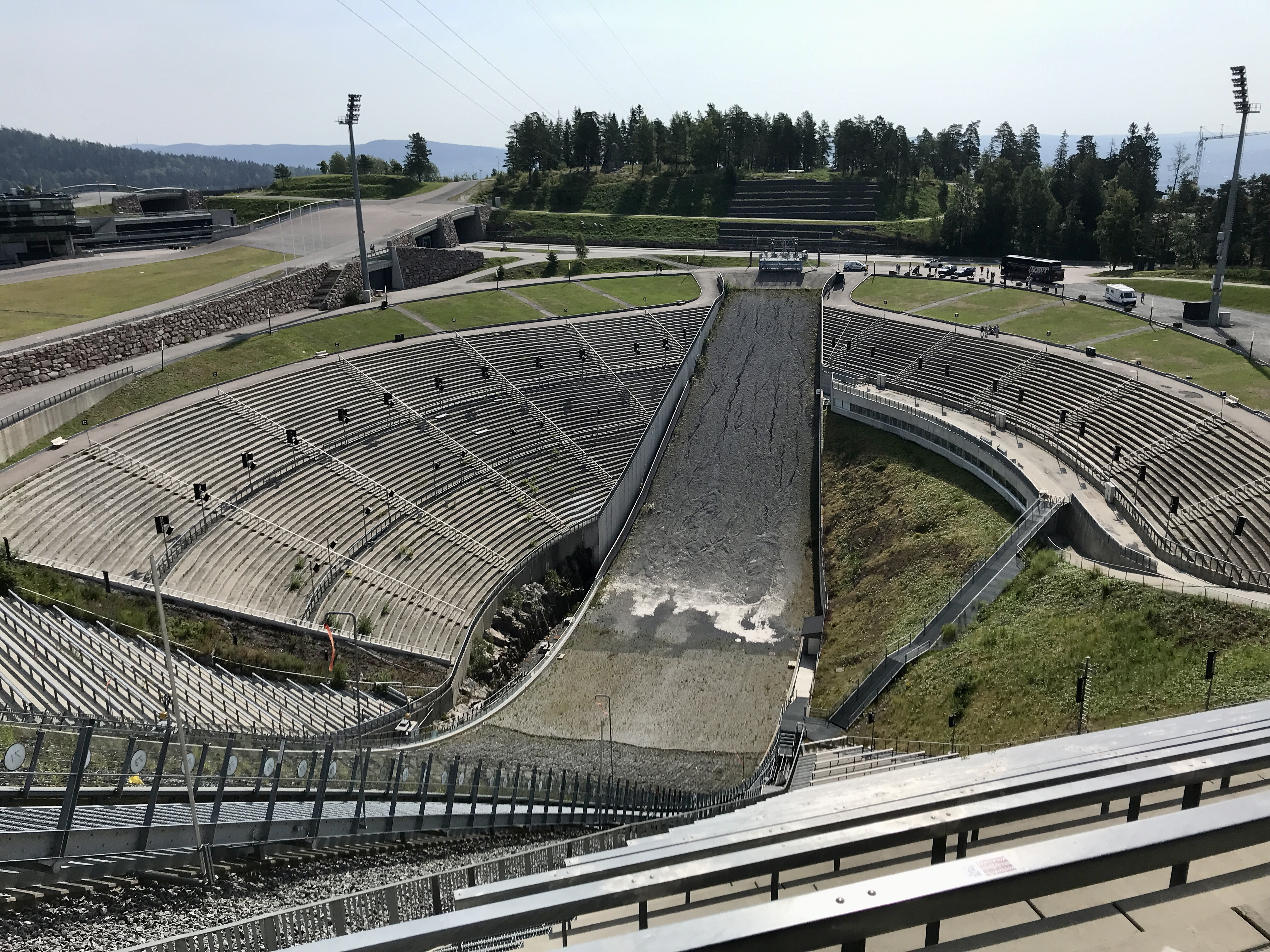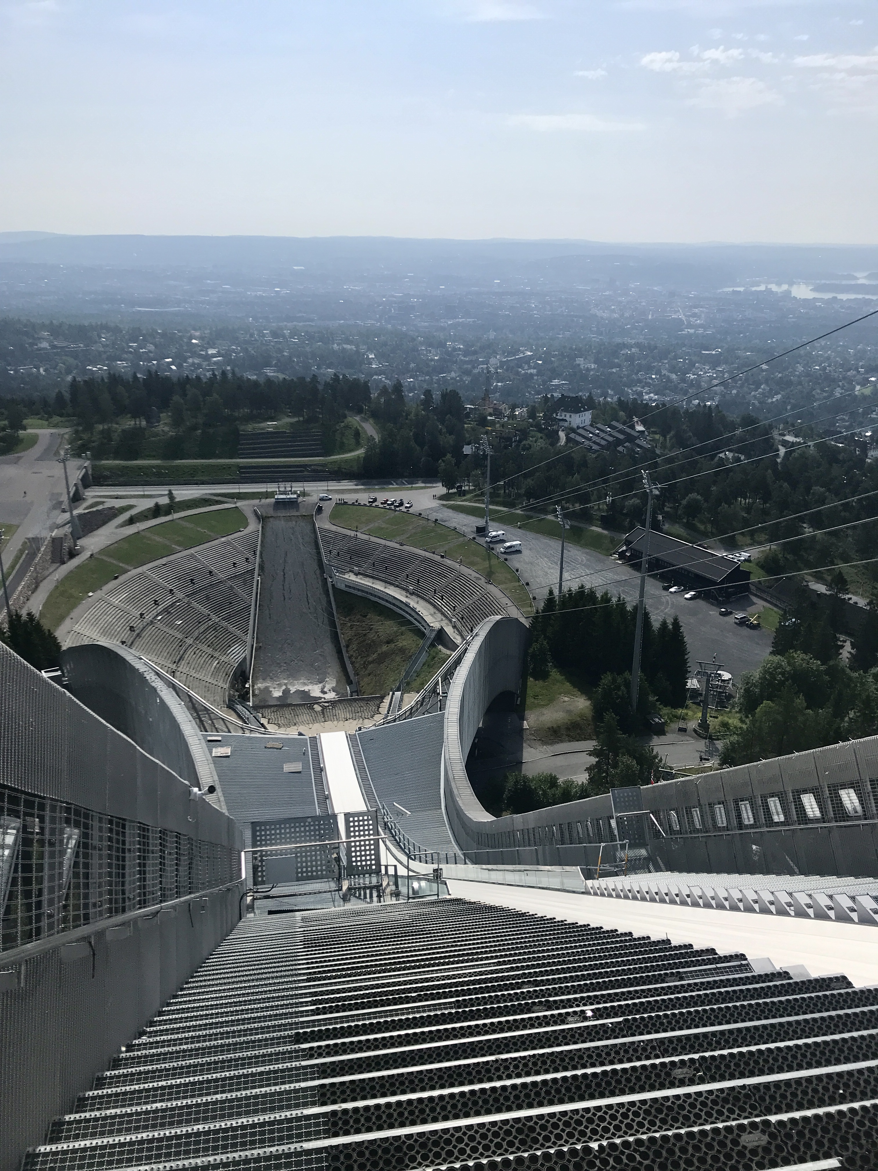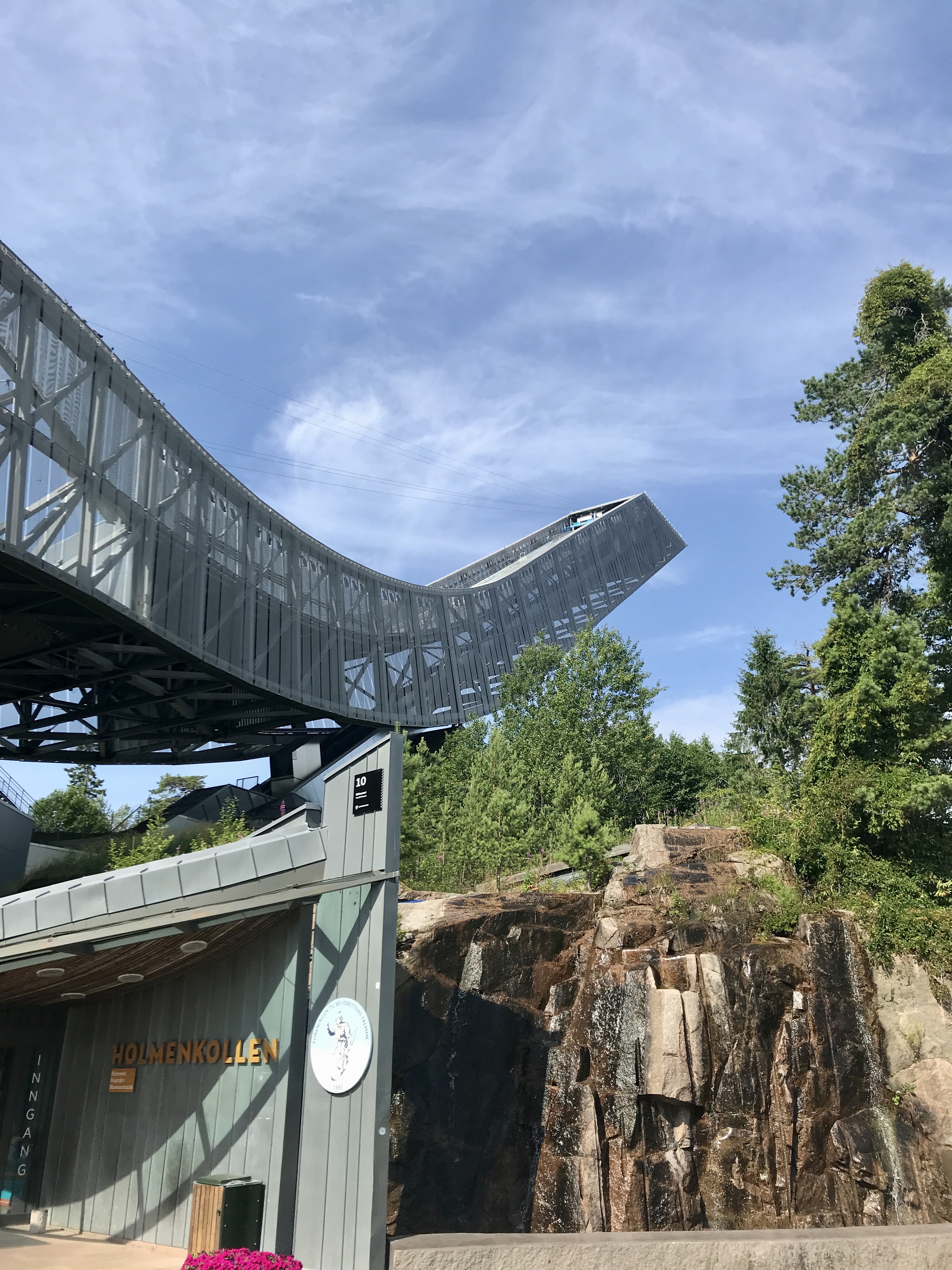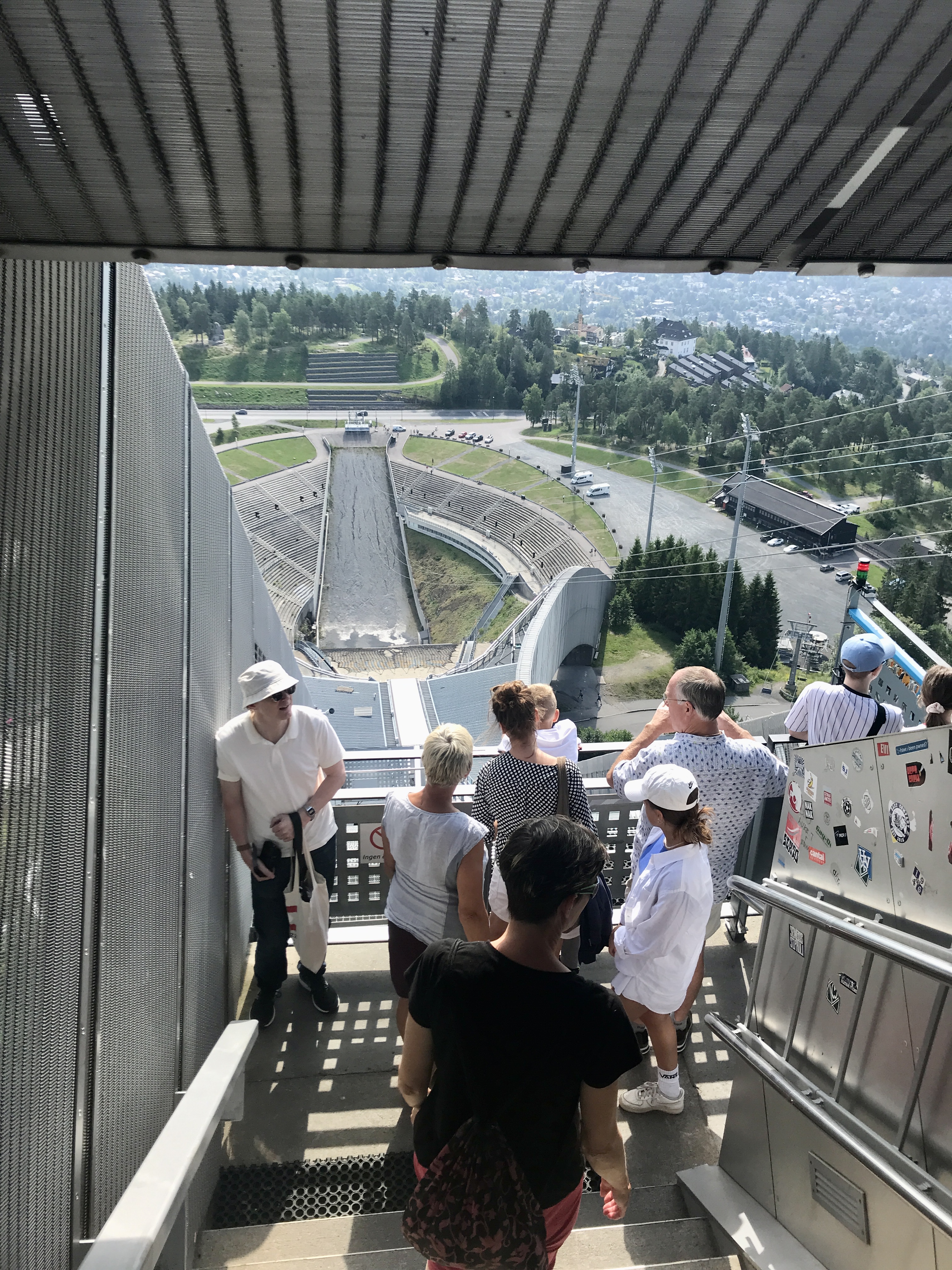 Auch die Besichtigung der Skisprungschanze Holmenkollen durfte nicht fehlen. Die liegt etwas ausserhalb, aber es lohnt sich, denn man hat einen wunderbaren Ausblick auf Oslo. Und interessant ist es auch, mal dort oben zu stehen…