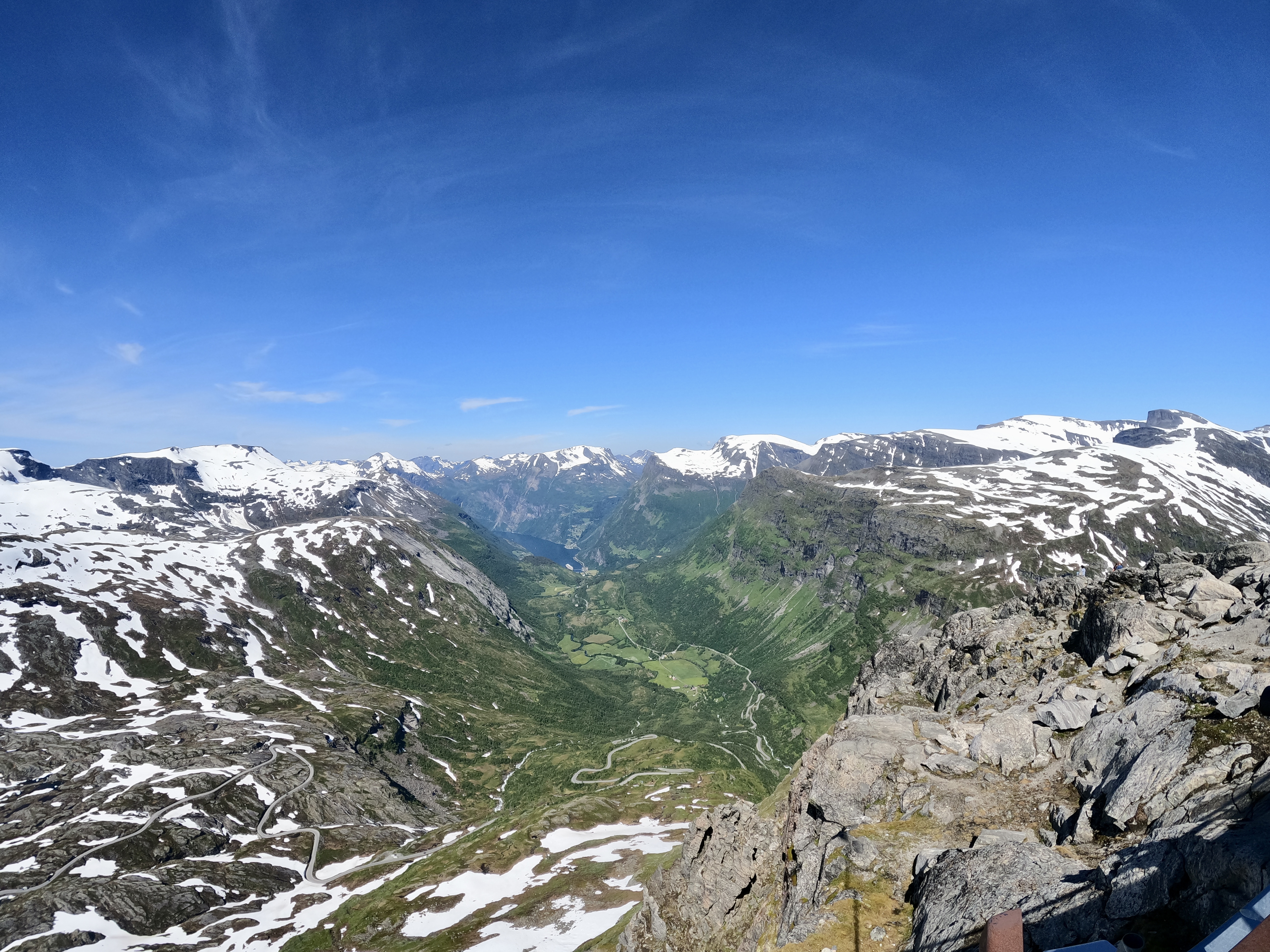 Auf dem Aussichtspunkt in Dalsnibba hatten wir ein super Panorama in Richtung Geiranger Fjord.
