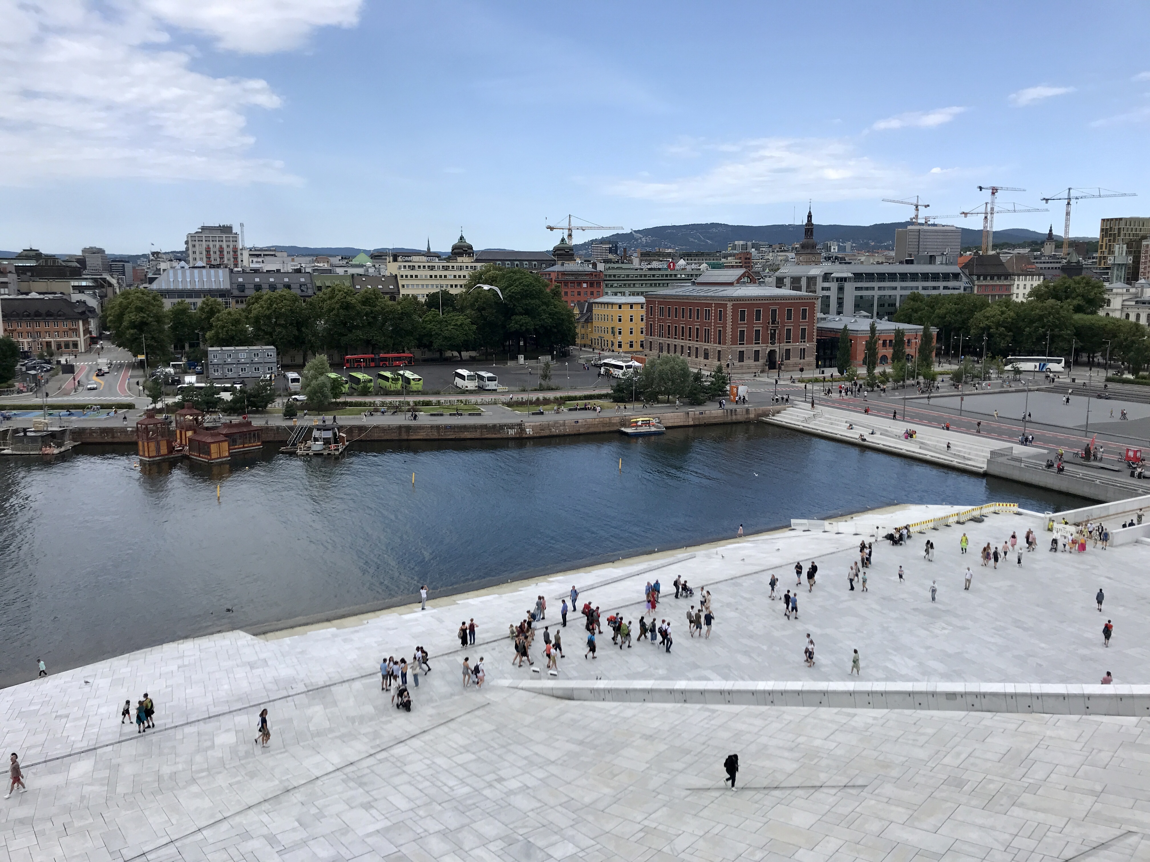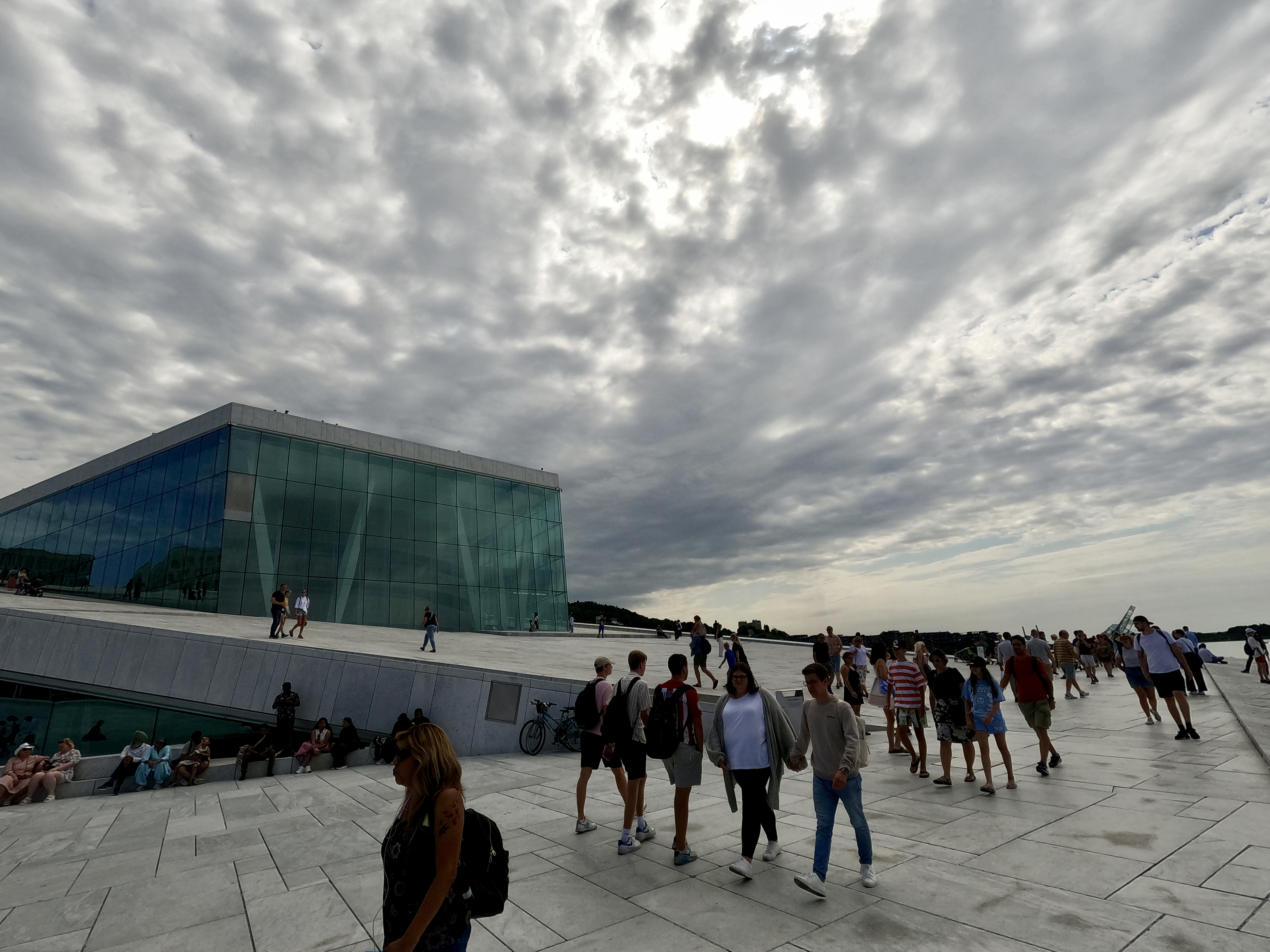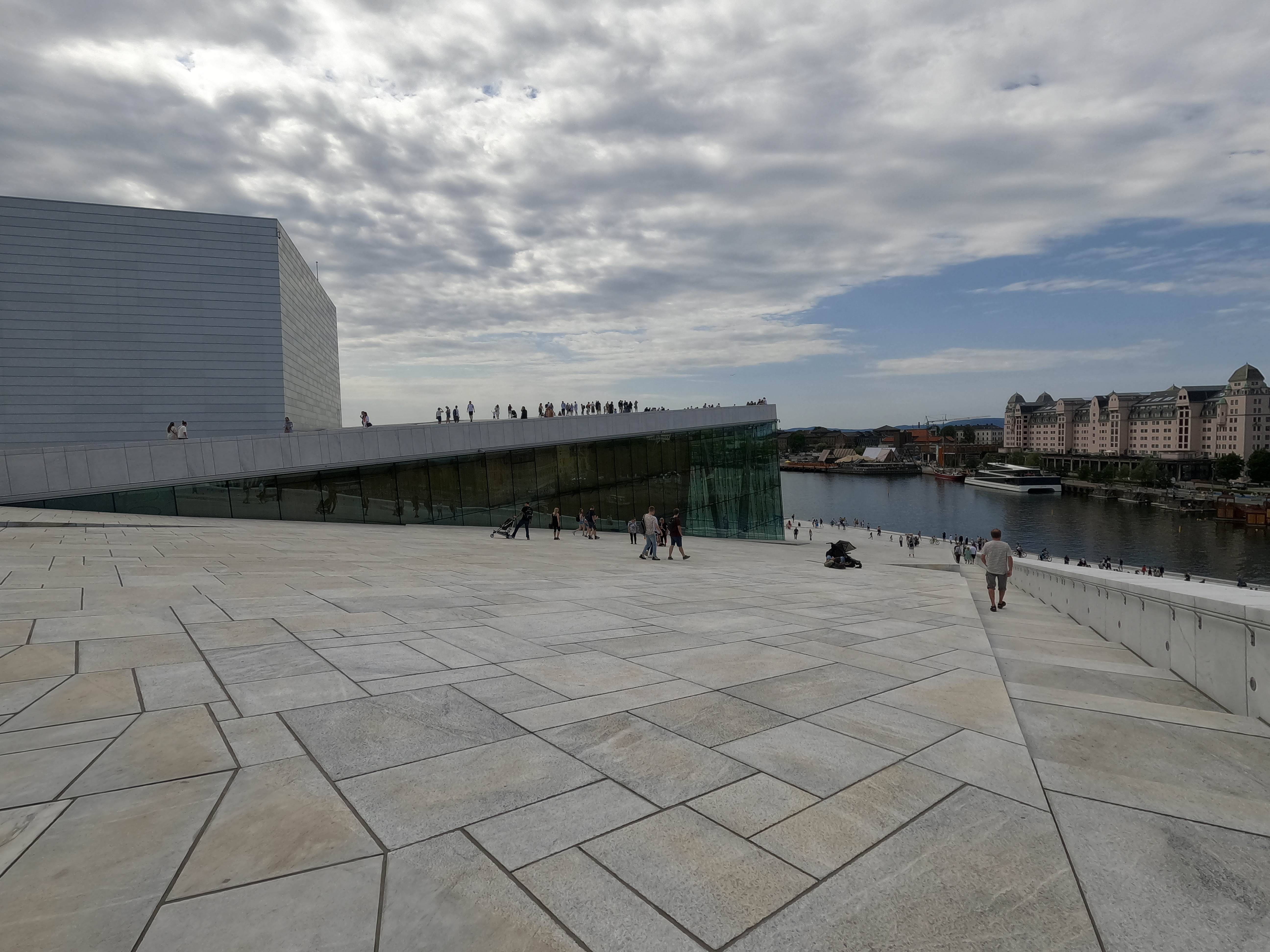 Gleich daneben befindet sich die Oper. Sie sieht wie ein riesiger Eisberg aus, der im Fjord schwimmt und von oben hat man eine gute Aussicht auf die Stadt.